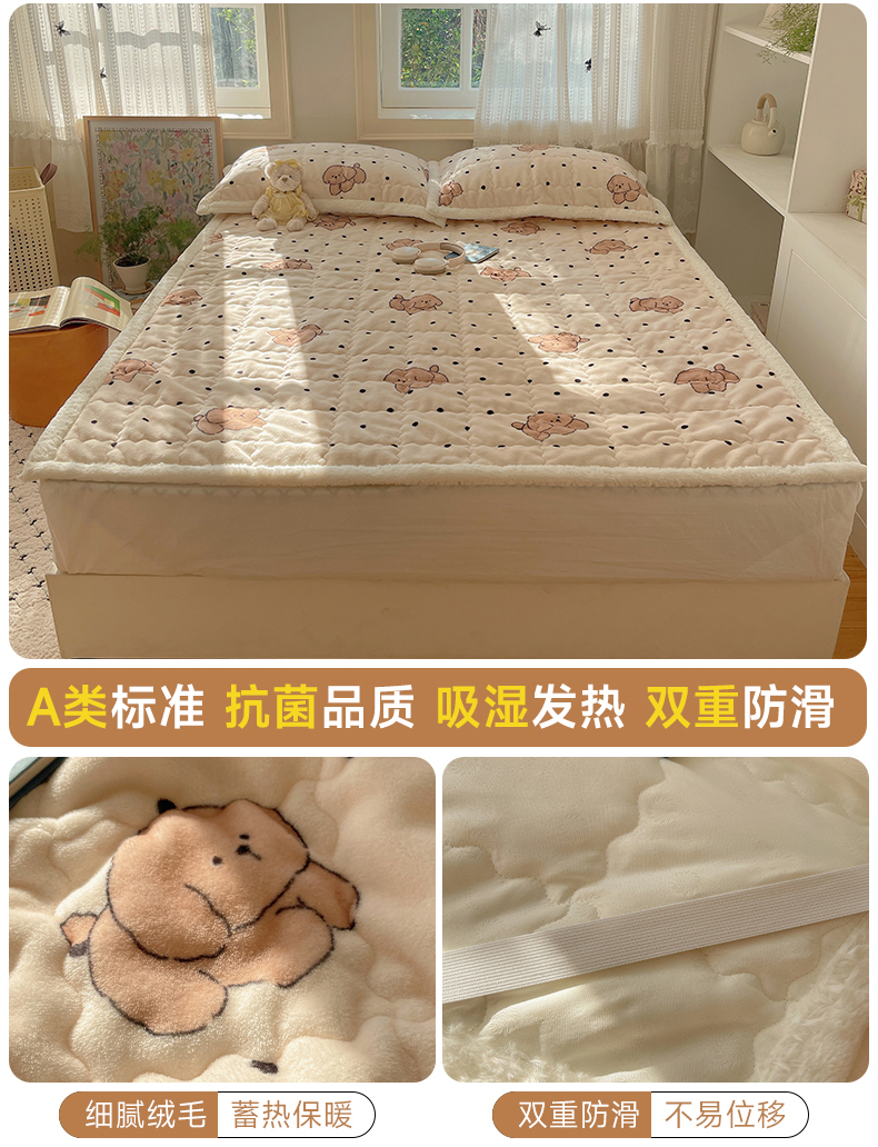(总)红嘴企鹅 2025新款高克重牛奶绒印花床护垫床褥