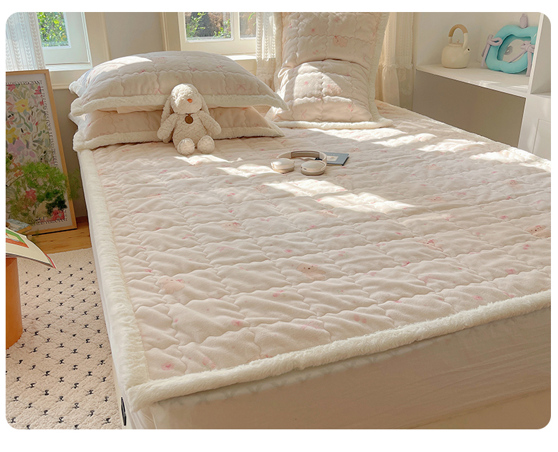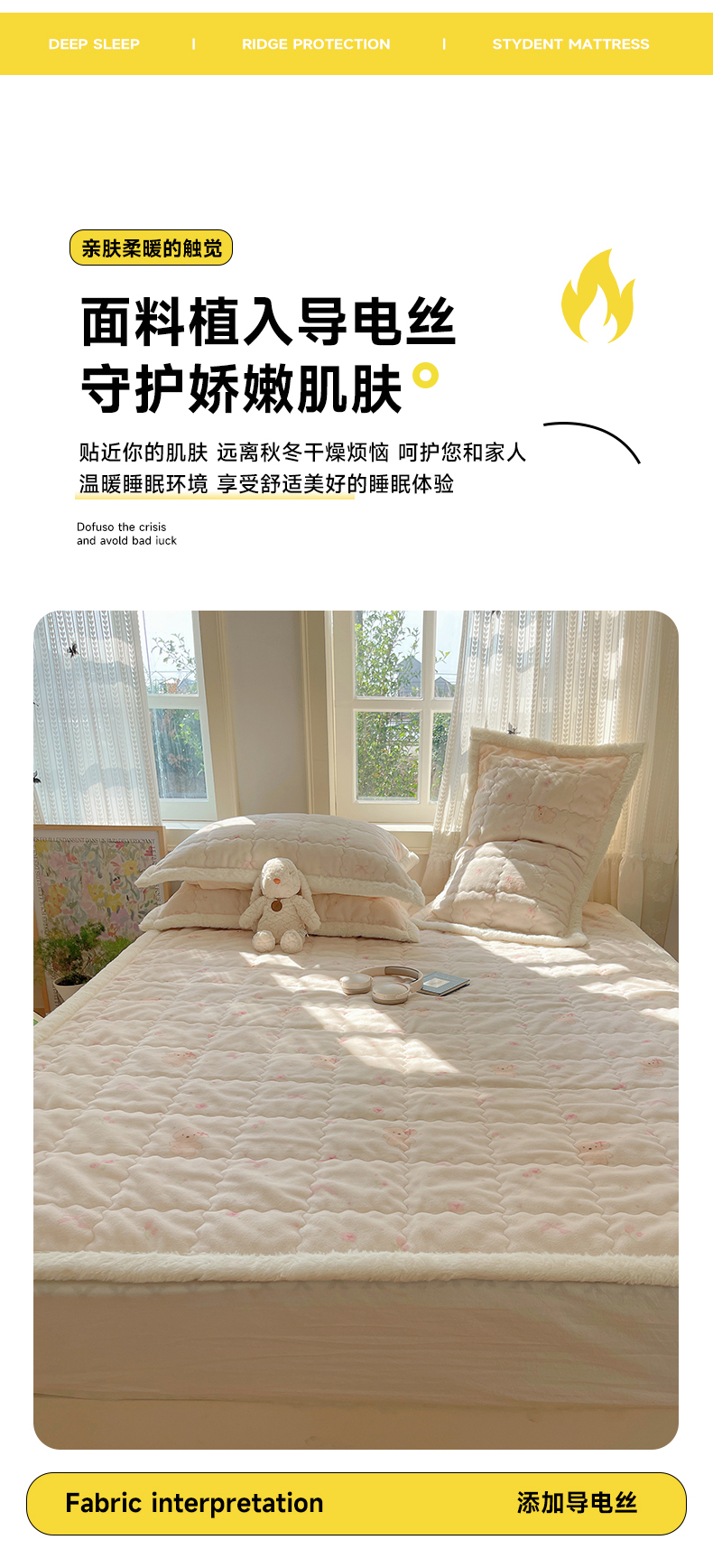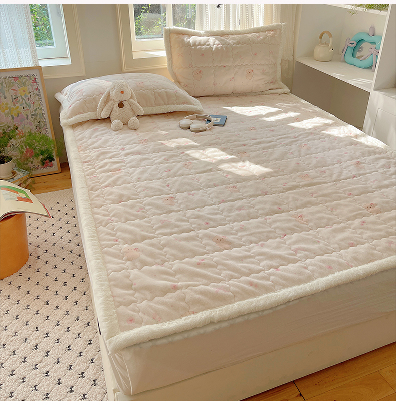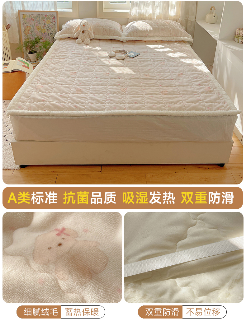 商品名称:红嘴企鹅 2025新款高克重牛奶绒印花床护垫床褥 可爱比熊