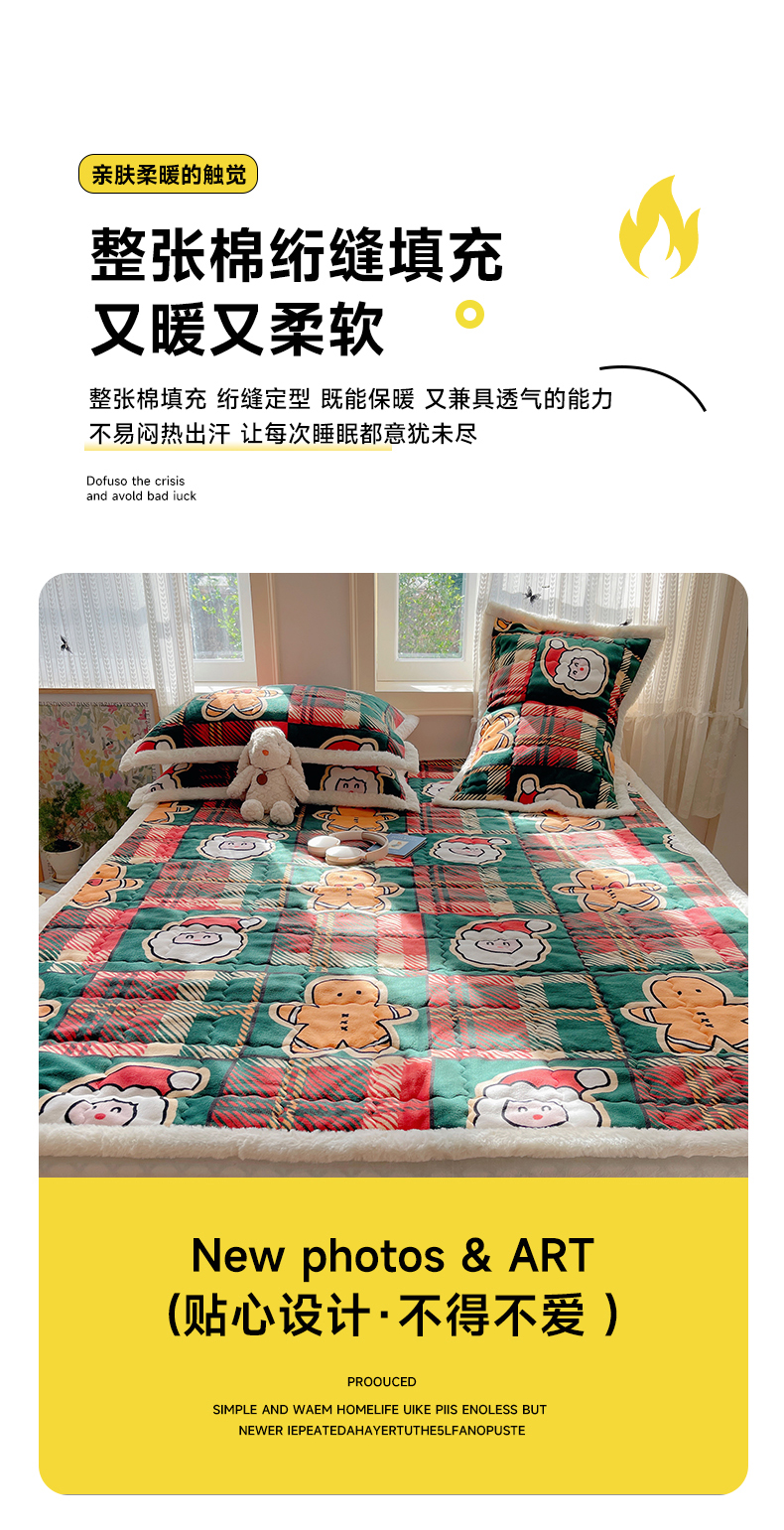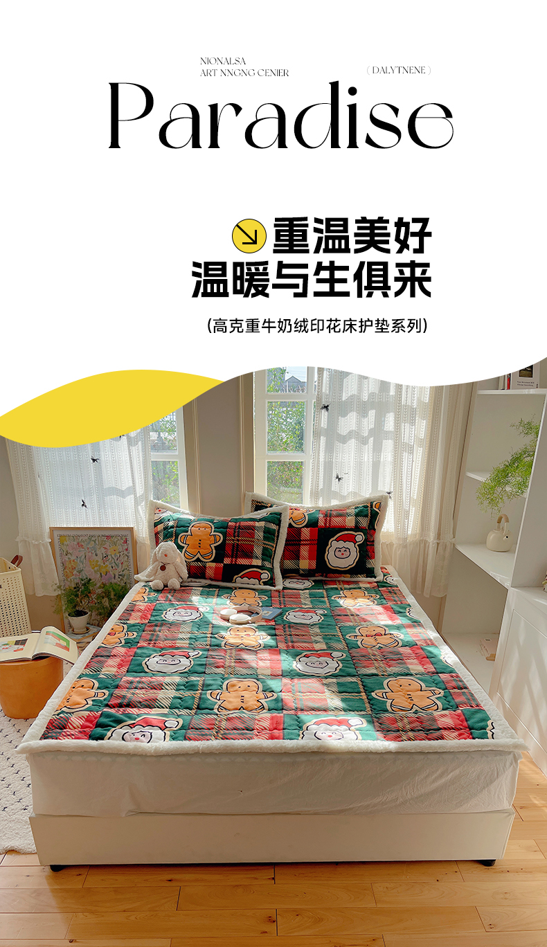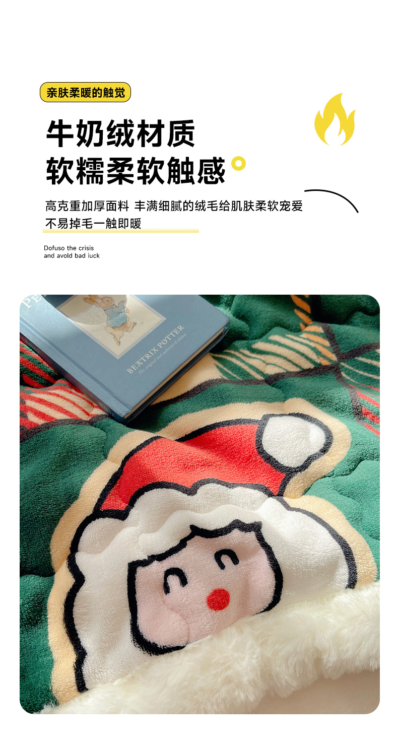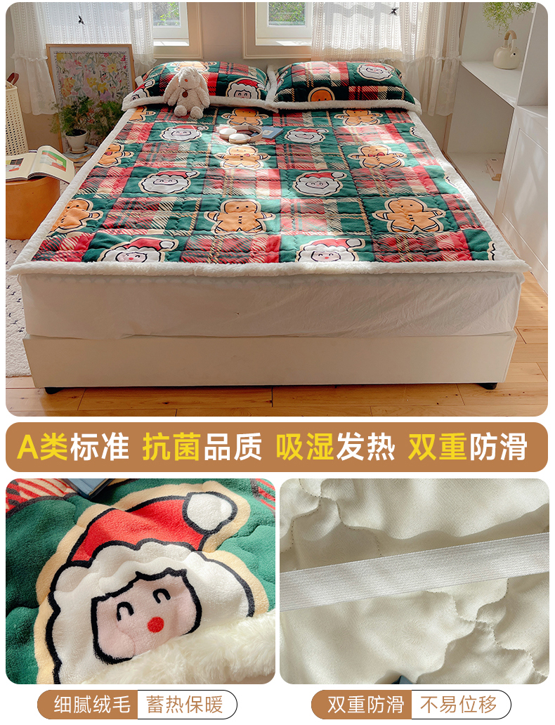 红嘴企鹅 2025新款高克重牛奶绒印花床护垫床褥 圣诞老人