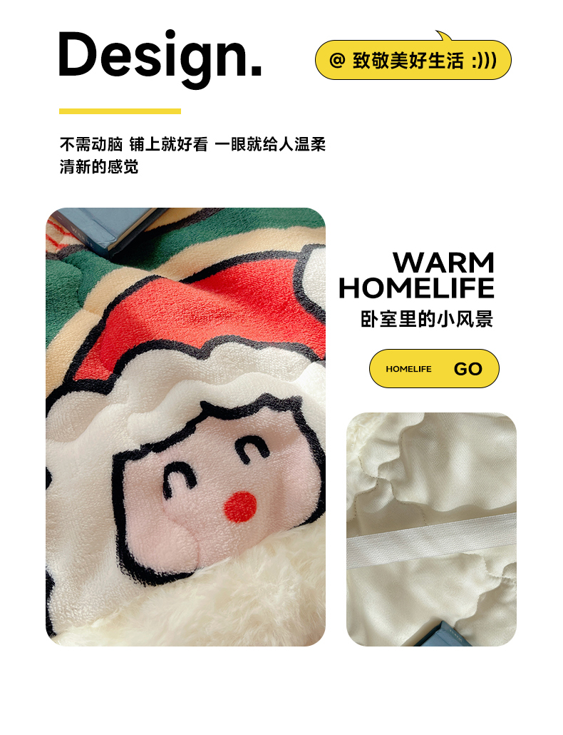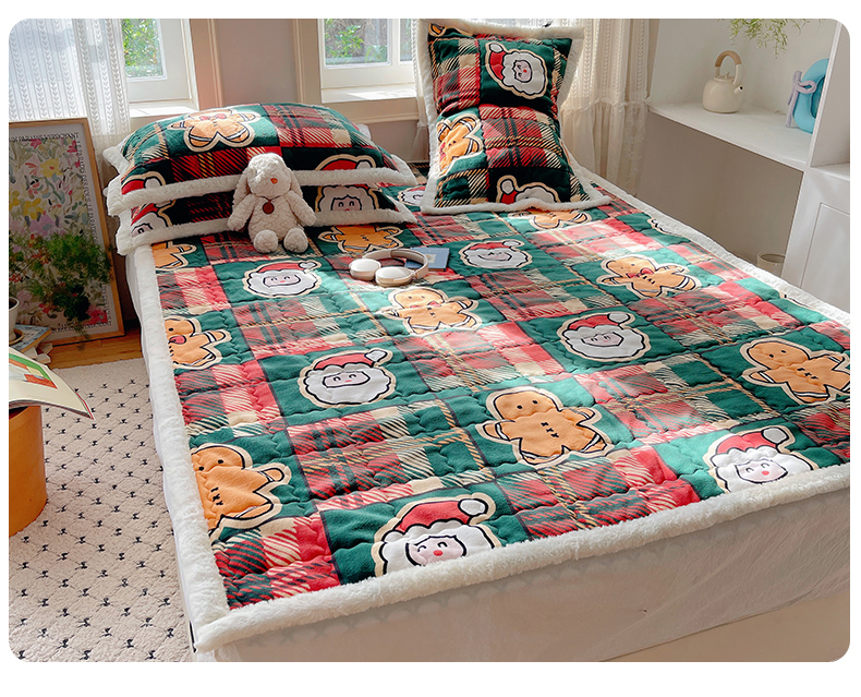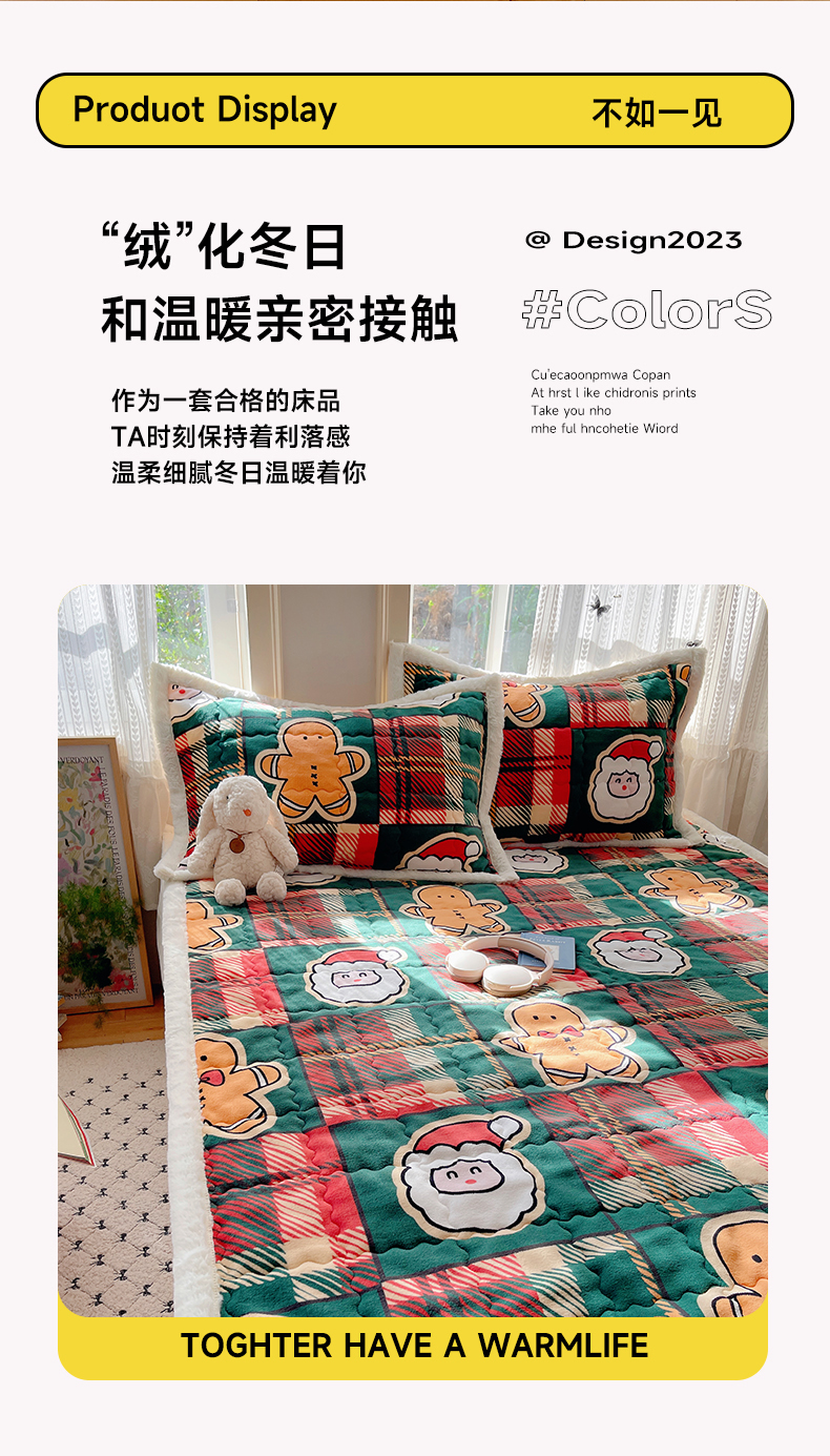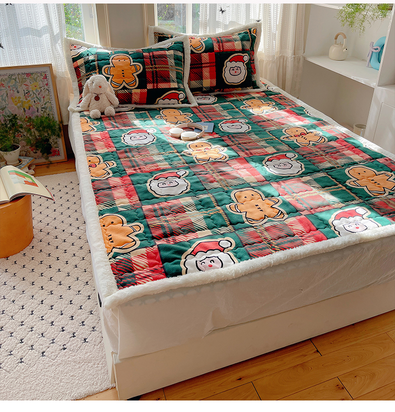 红嘴企鹅 2025新款高克重牛奶绒印花床护垫床褥 圣诞老人