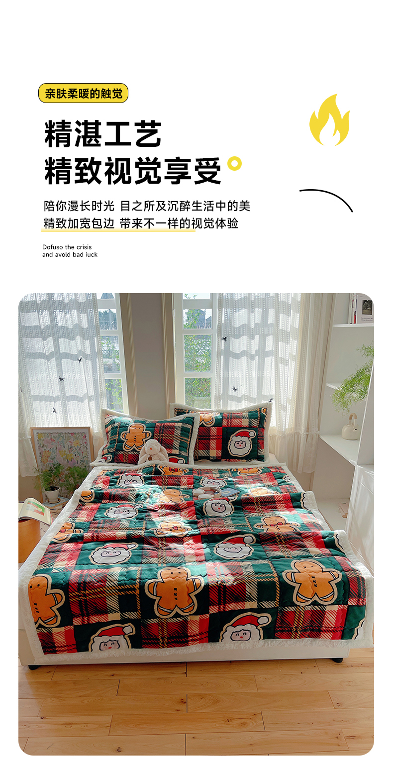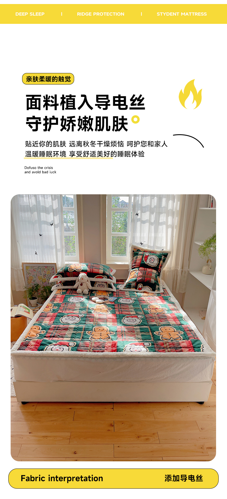商品名称:红嘴企鹅 2025新款高克重牛奶绒印花床护垫床褥 圣诞老人