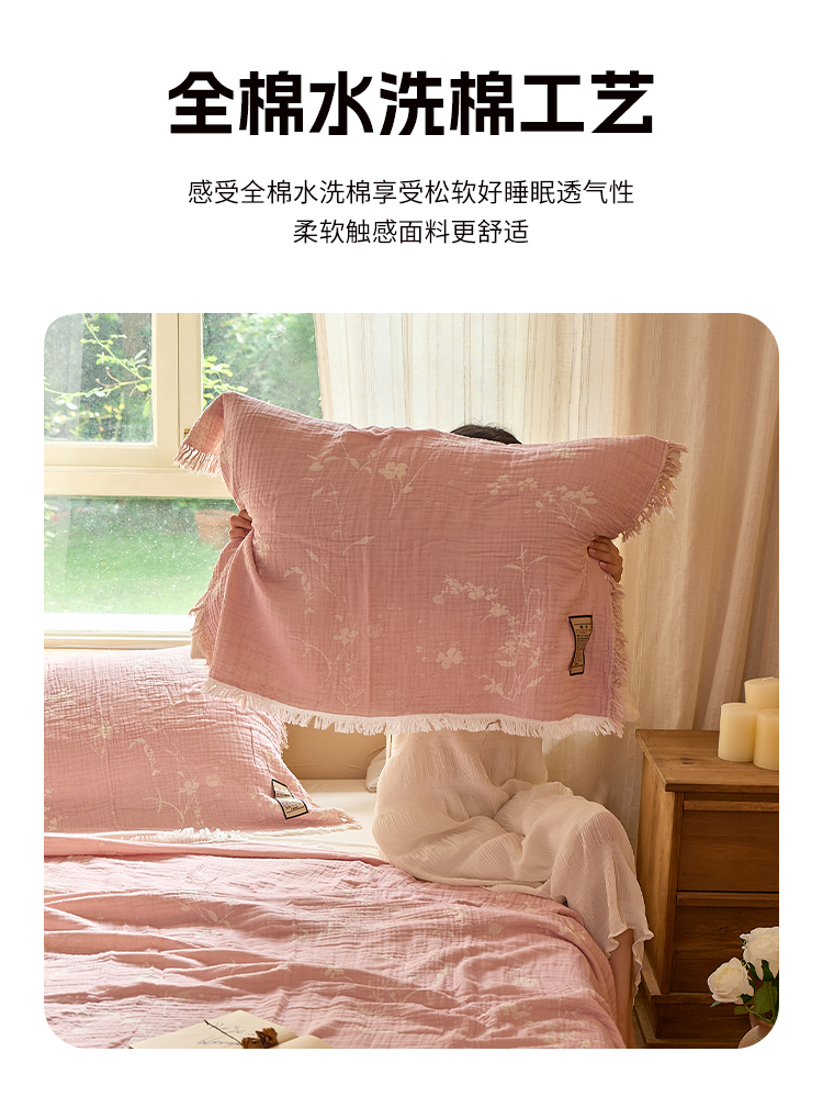(总)沐瑟家纺 2025新款简约风多功能纱布盖毯纱布毯子毛巾被床盖沙发巾单毯枕巾枕套三件套,H本色,H橙色,H咖色,大马士革本色
