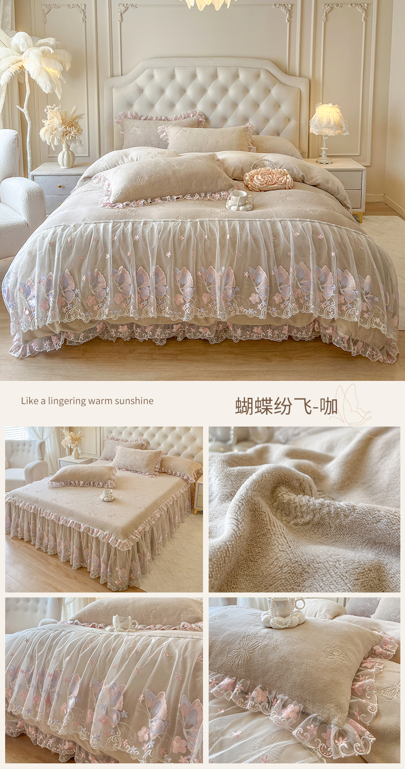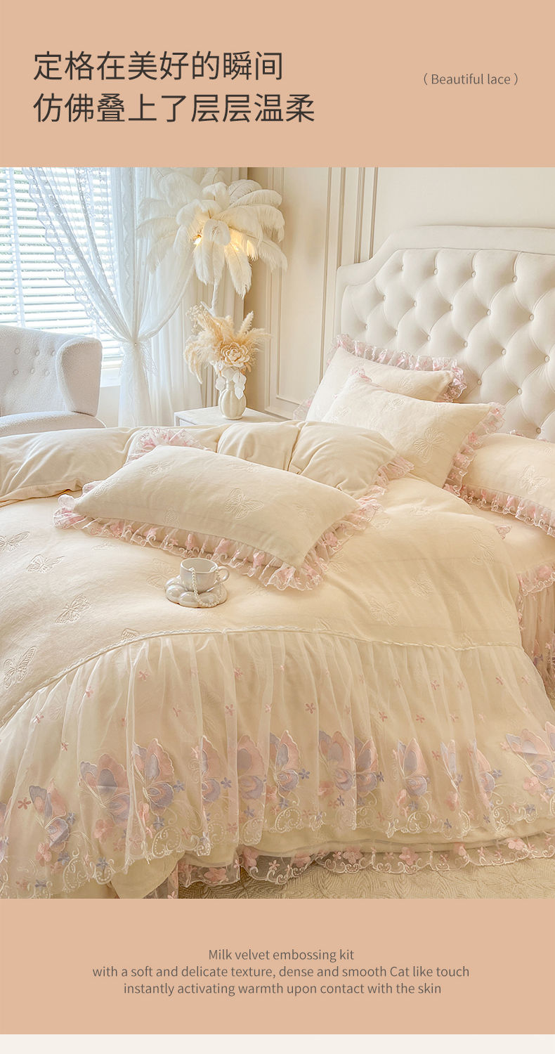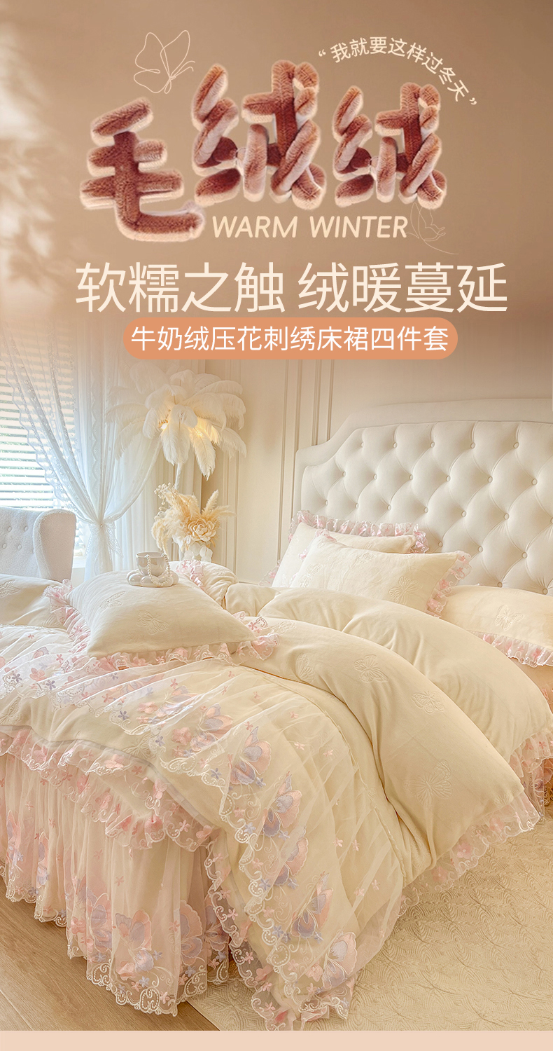 当前位置: 91家纺网 > 商品网购 > 床品套件 > 四件套 > 牛奶绒四件套 > 网红馆(ck家纺) 2025新款牛奶绒刺绣四件套-蝴蝶纷飞系列 蝴蝶纷飞-米