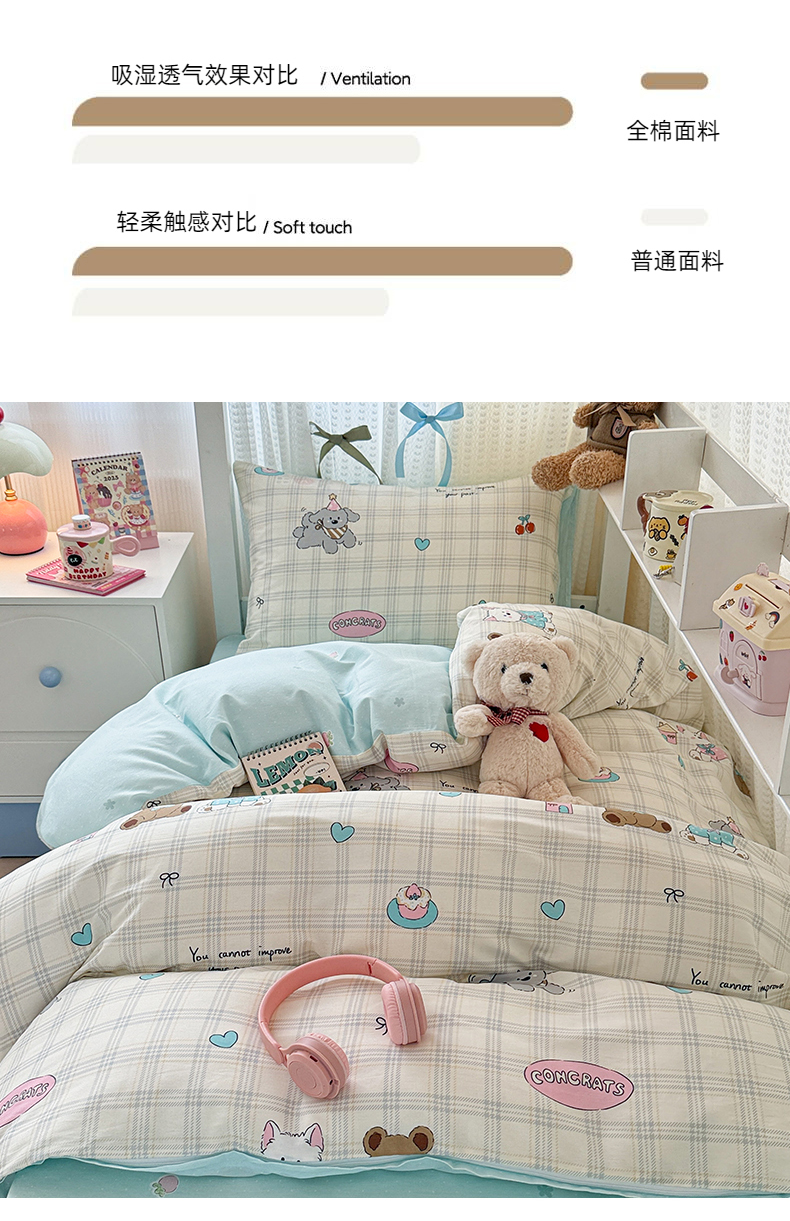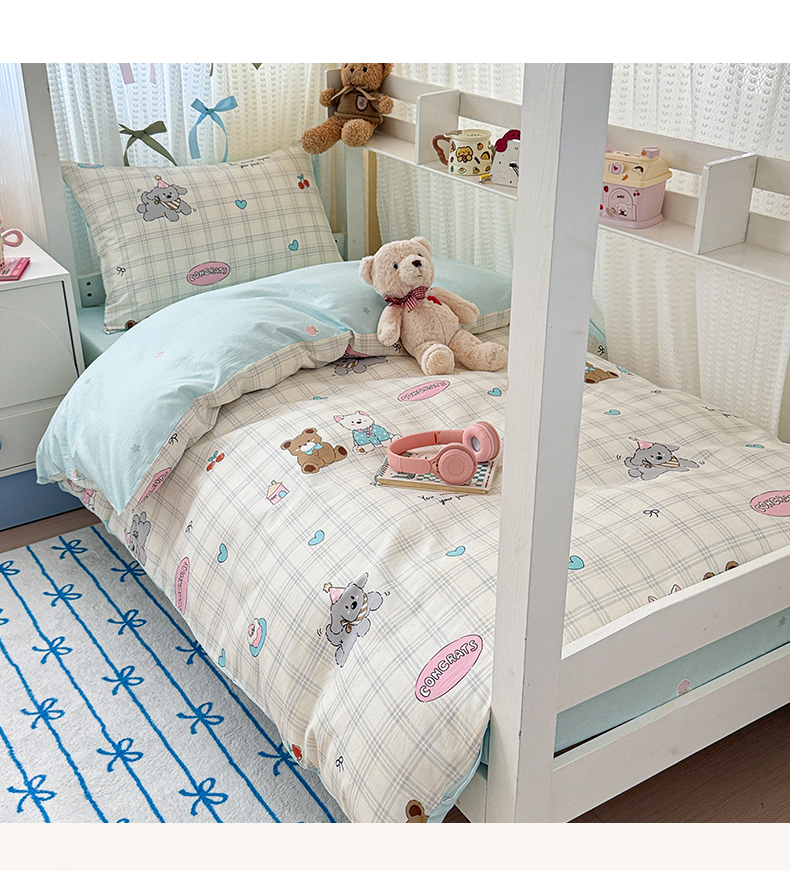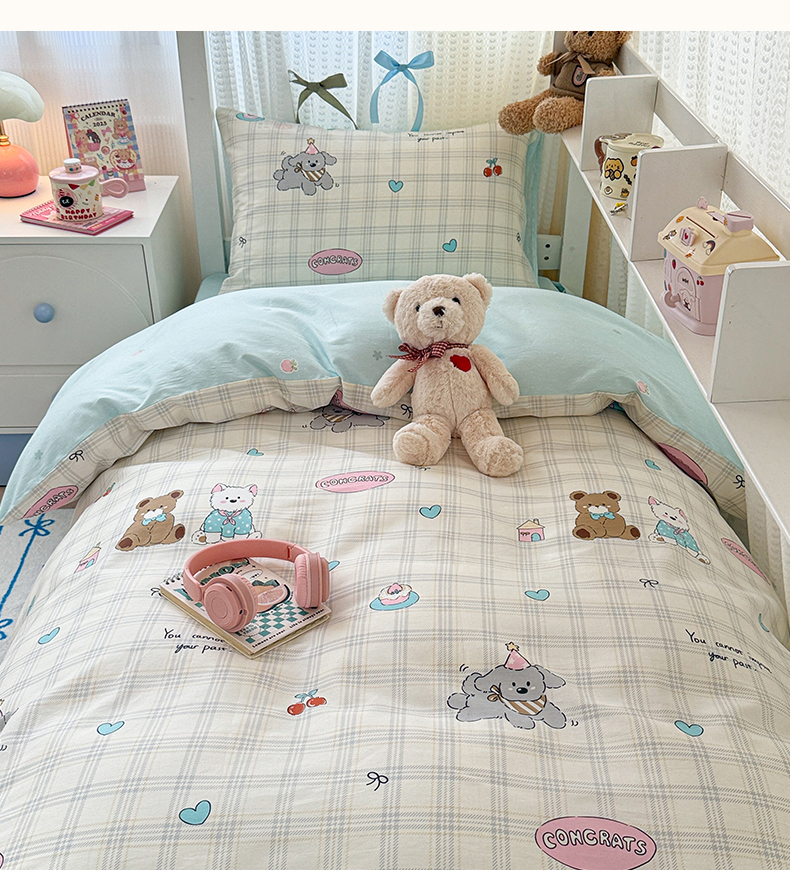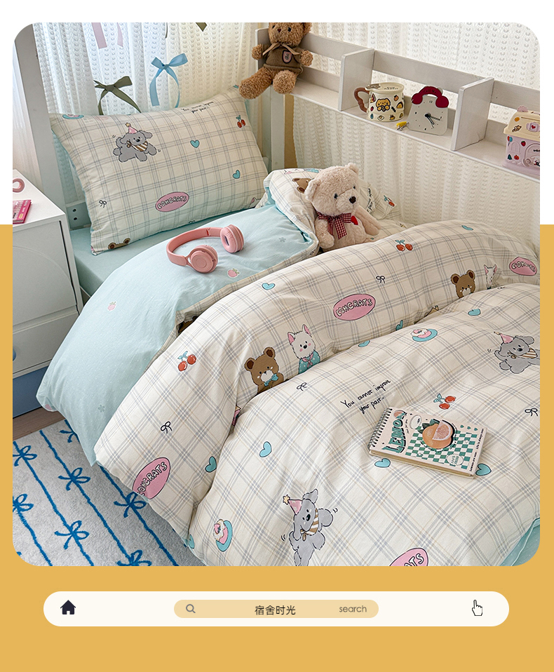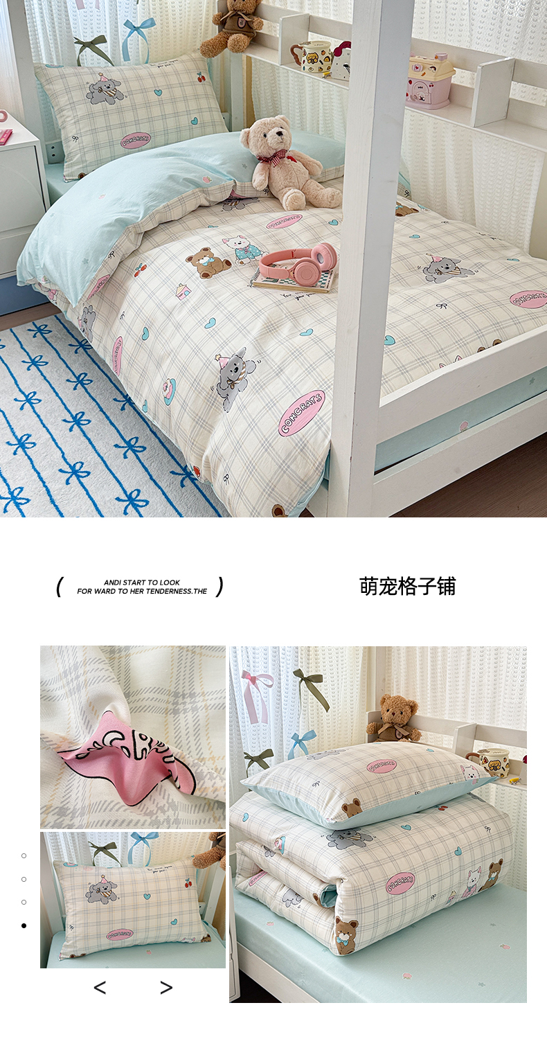 当前位置: 91家纺网 > 商品网购 > 床品套件 > 三件套 > 简宜家居(朝初家纺) 2025新款全棉12868斜纹卡通花卉学生三件套四件套 萌宠格子铺
