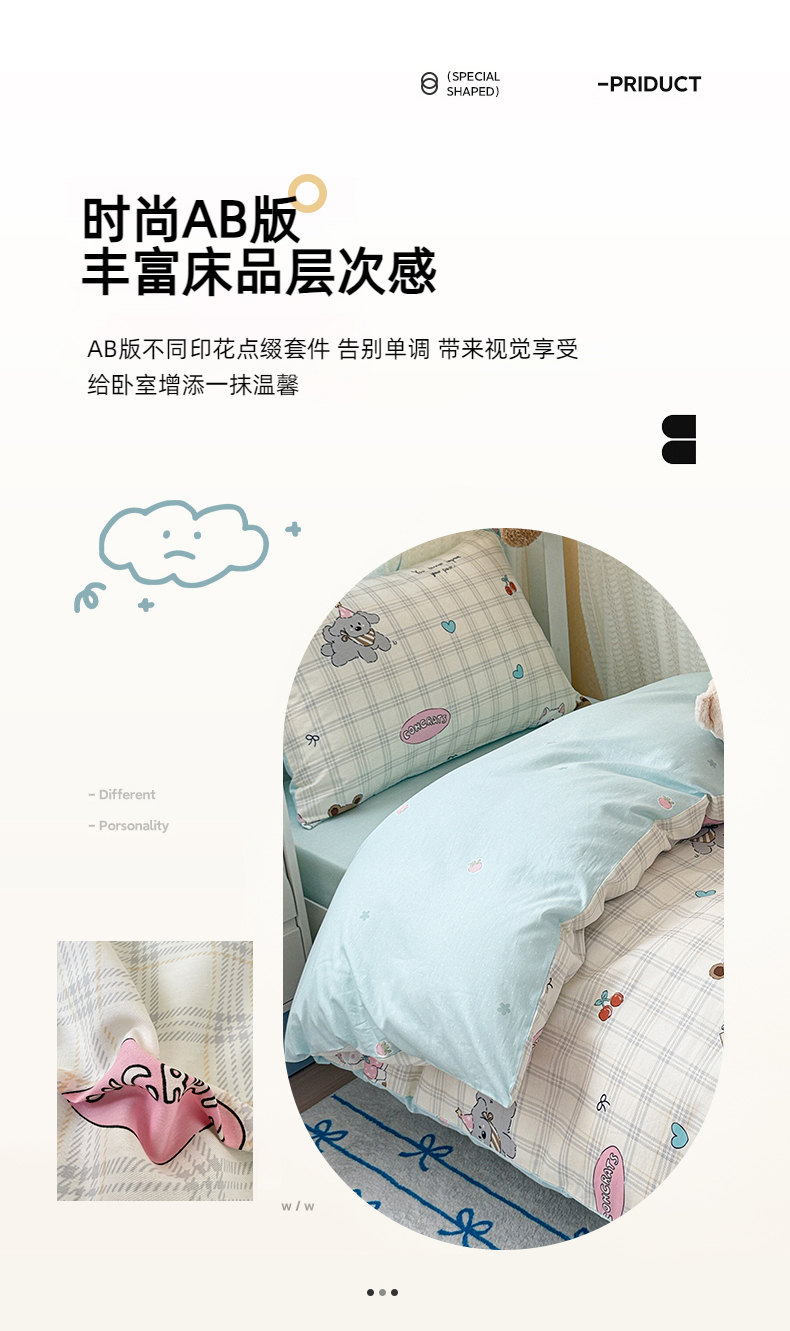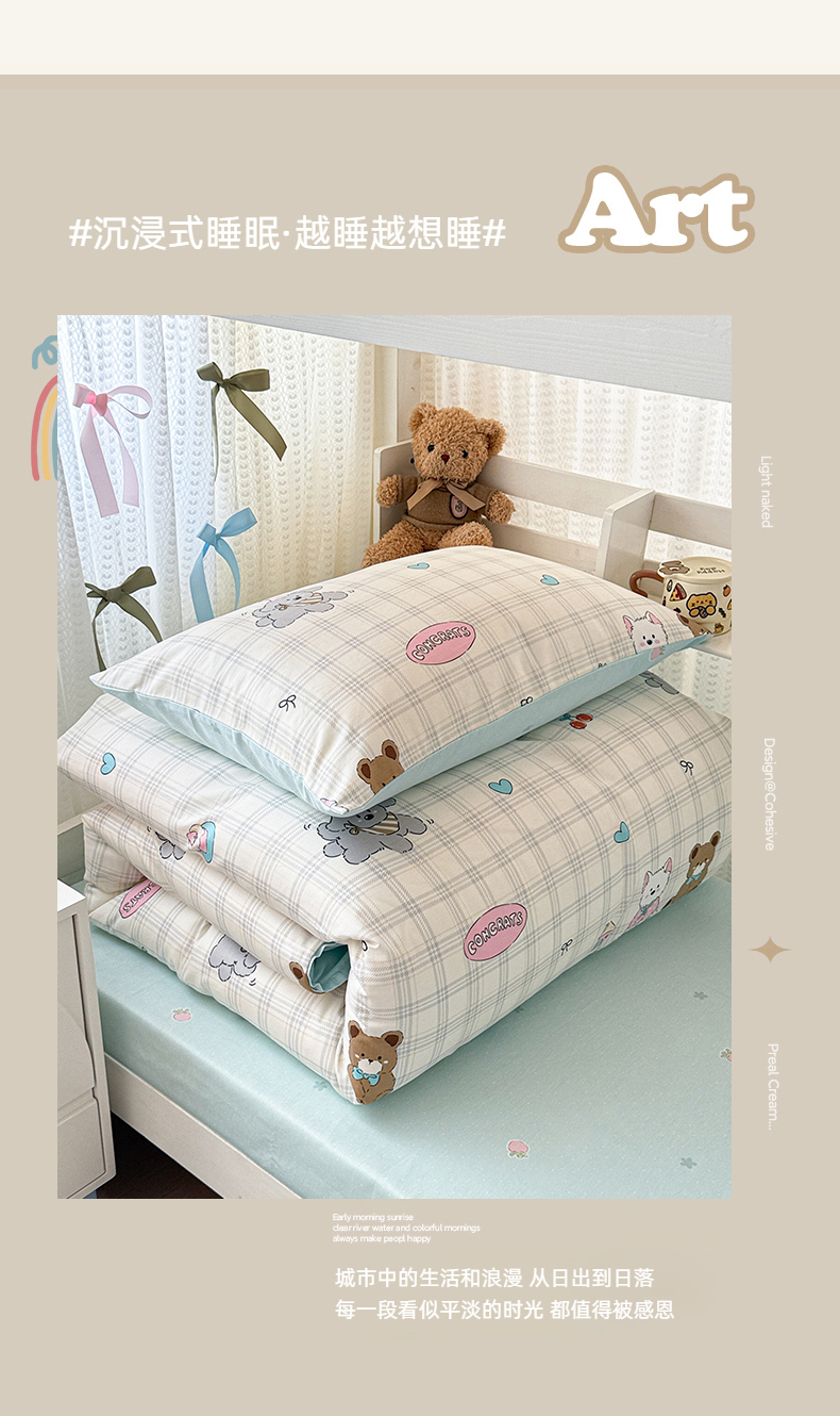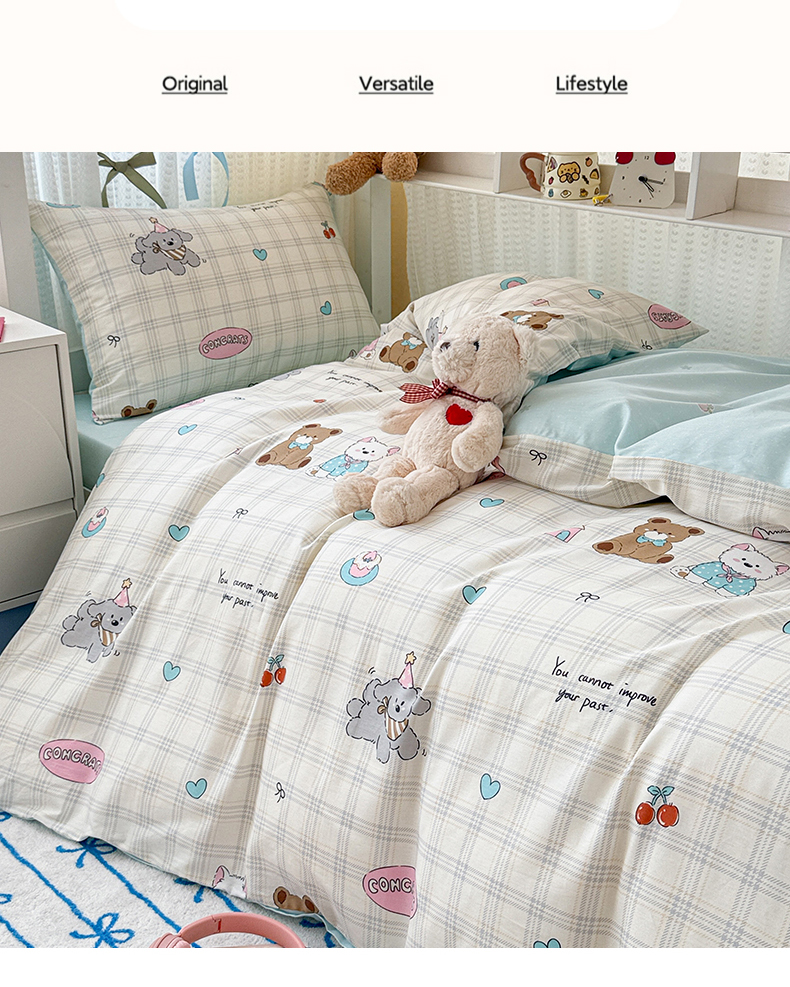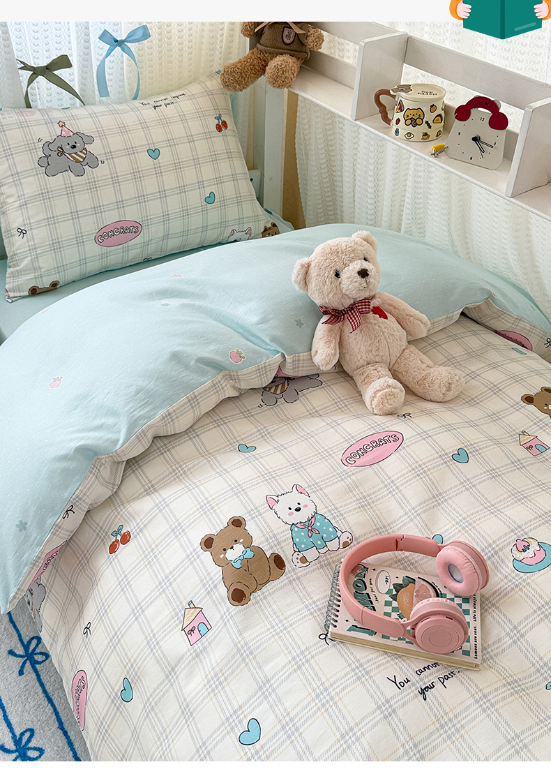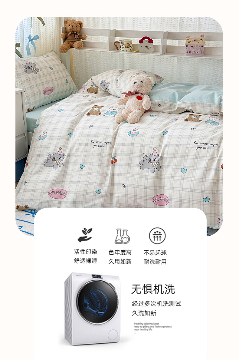 当前位置: 91家纺网 > 商品网购 > 床品套件 > 三件套 > 简宜家居(朝初家纺) 2025新款全棉12868斜纹卡通花卉学生三件套四件套 萌宠格子铺