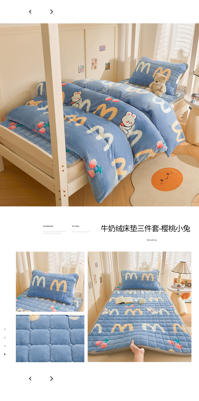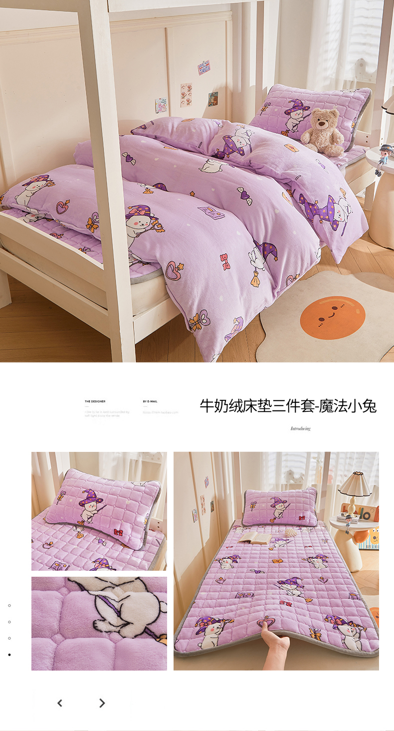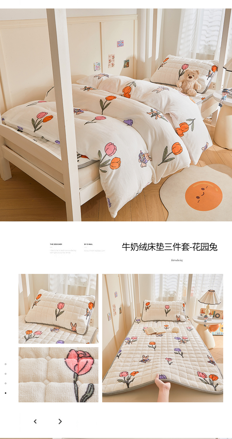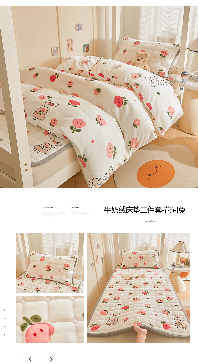 当前位置: 91家纺网 > 商品网购 > 床品套件 > 三件套 > 雅萱家纺 2025新款牛奶绒学生床垫三件套 牛奶绒床垫三件套-花园兔