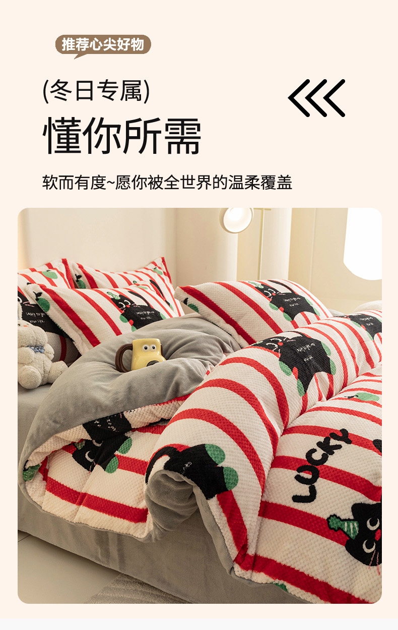 (总)倾慕家纺 2025新款卡通毛巾绣加厚保暖牛奶绒四件套,爱心女孩,咖啡小狗,猫咪熊兔,迷你小车,圣诞树熊,音乐企鹅