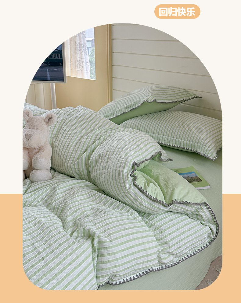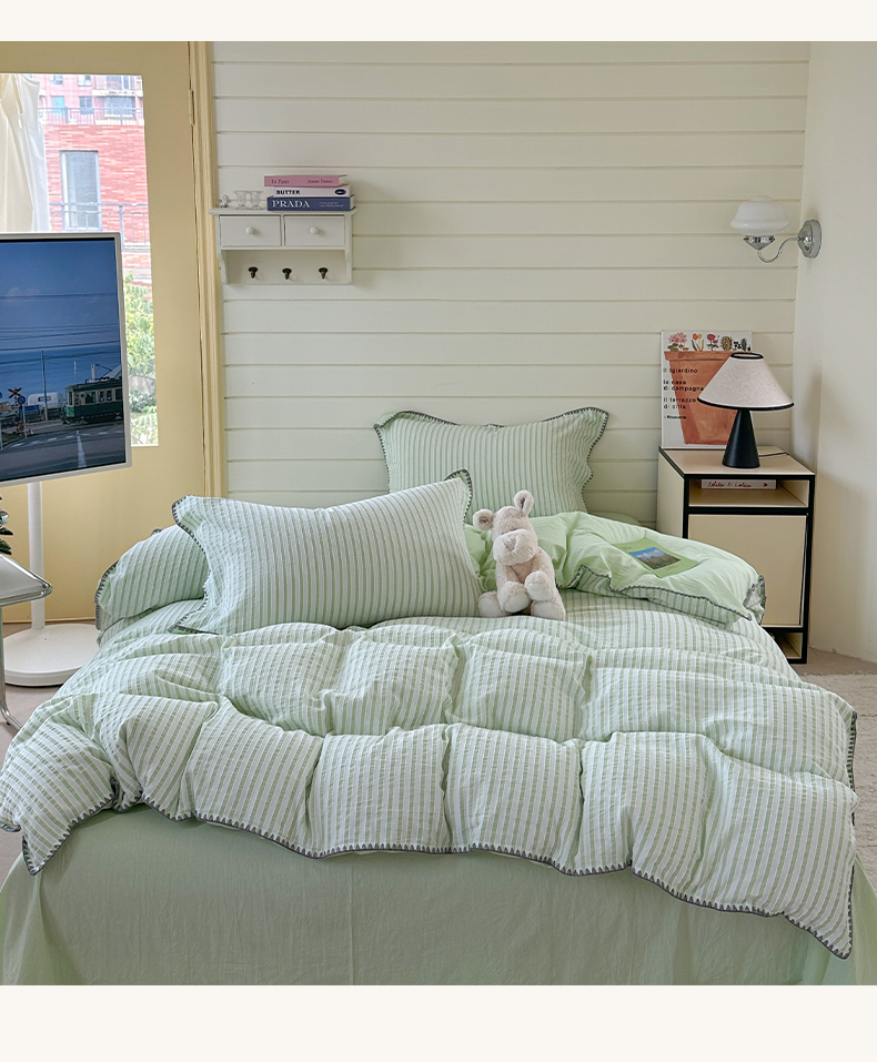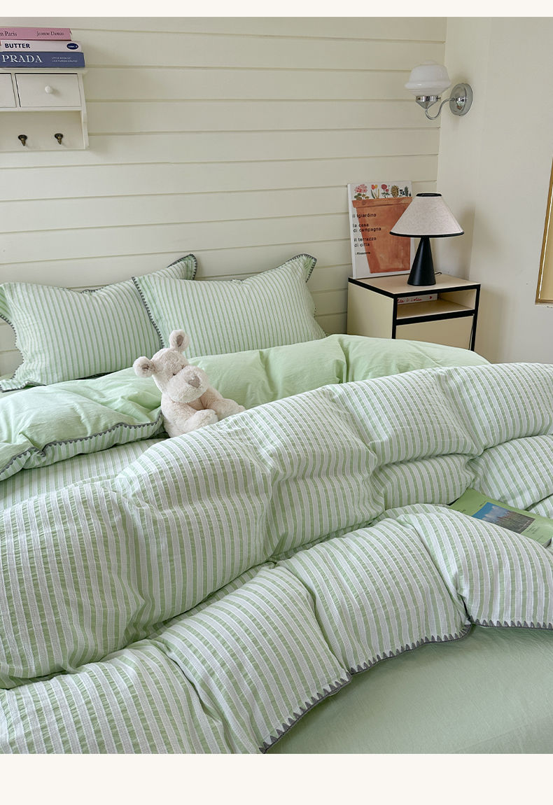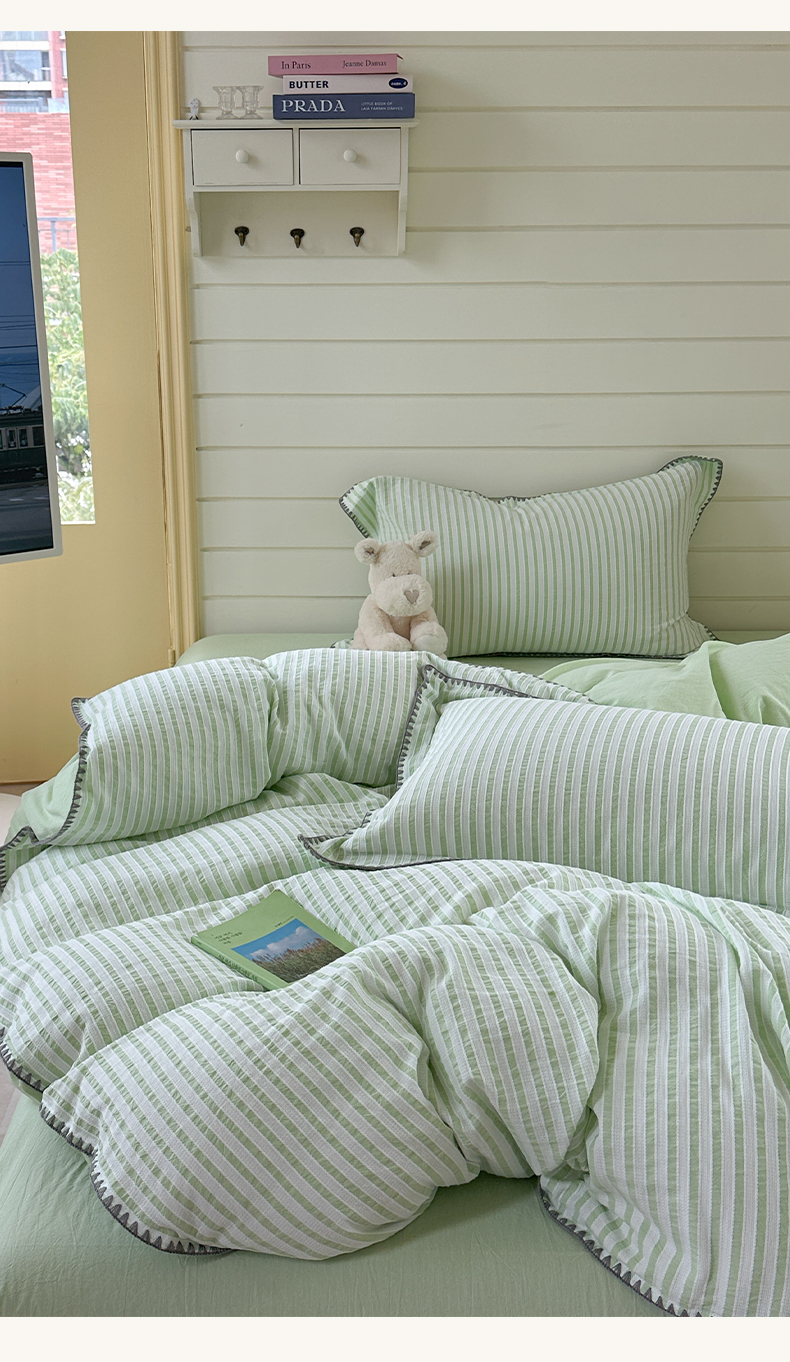 琳可家居 2025新款色织全棉四件套-条纹系列 条纹-清水绿