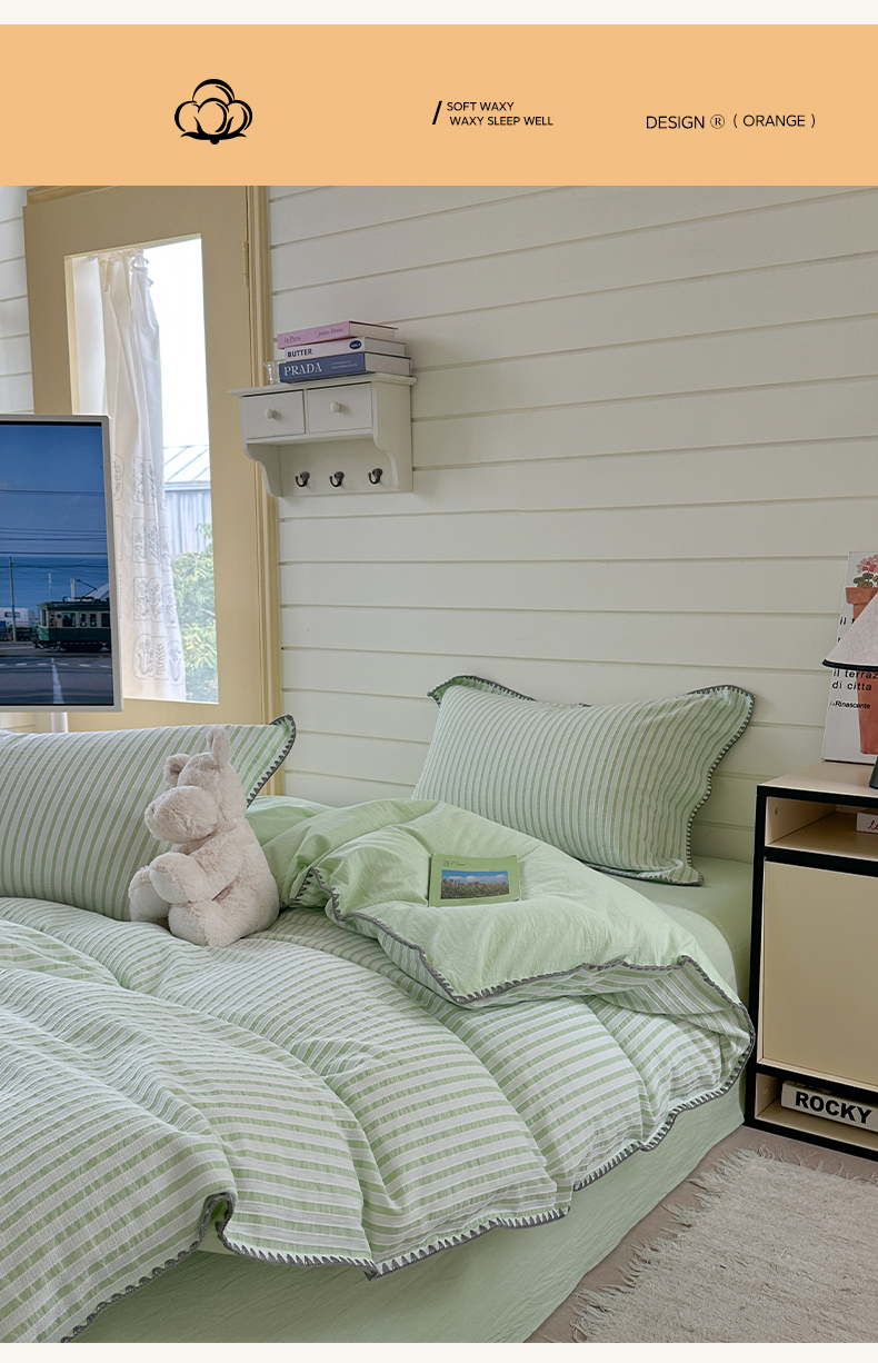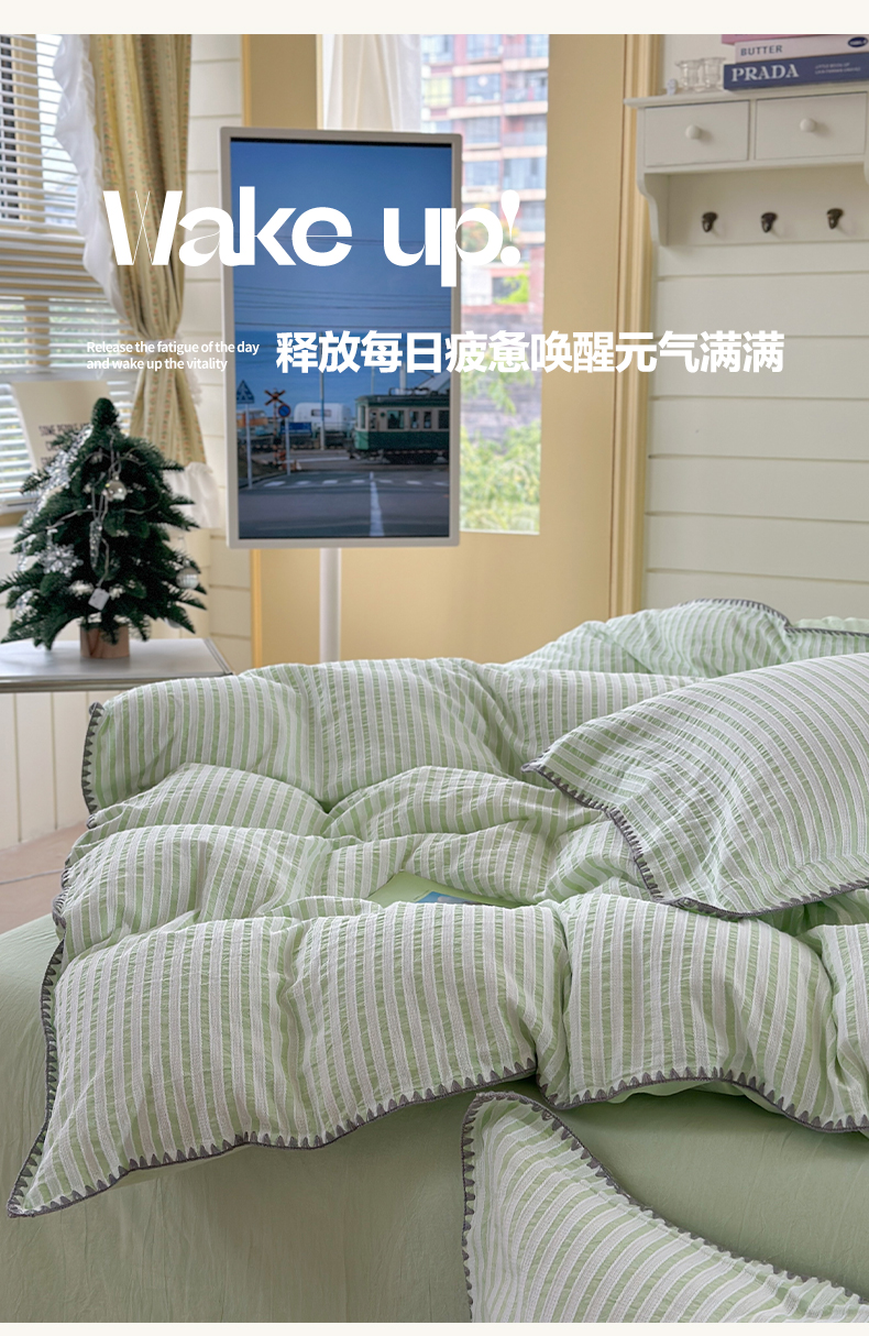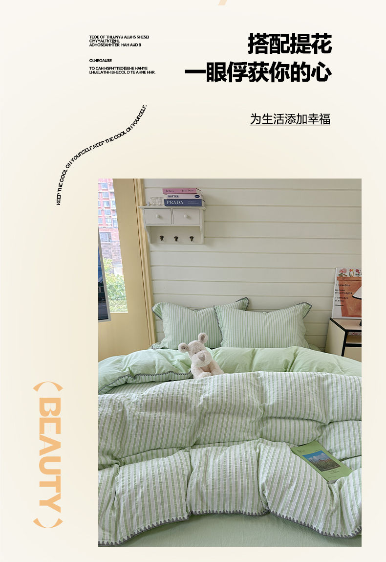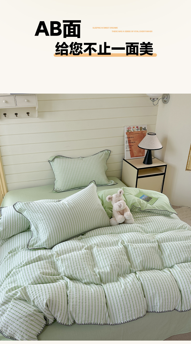琳可家居 2025新款色织全棉四件套-条纹系列 条纹-清水绿