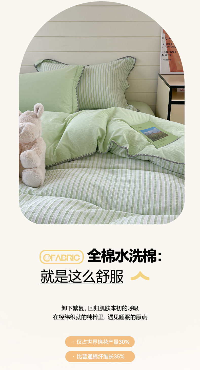 商品名称:琳可家居 2025新款色织全棉四件套-条纹系列 条纹-清水绿