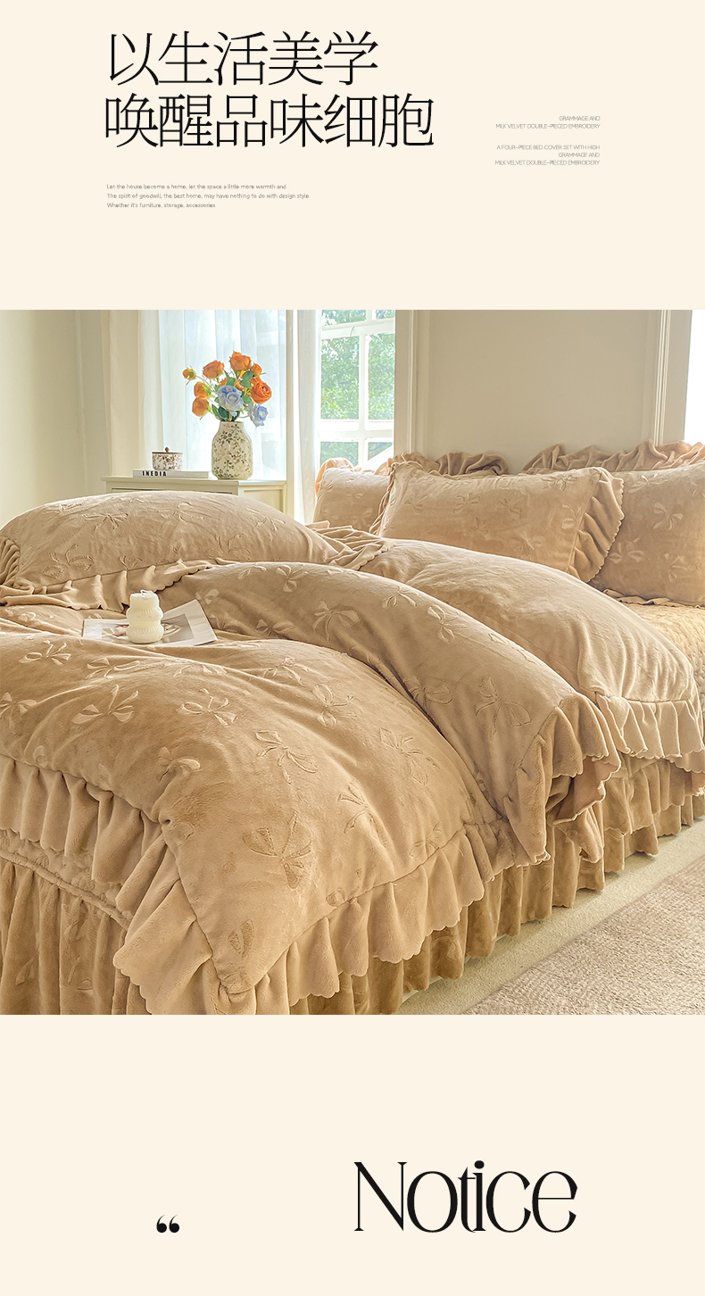 商品名称:慕希家纺 2025新款高克重牛奶绒夹棉床盖四件套 安娜-奶咖