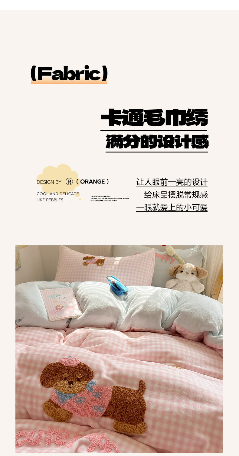商品名称:韩都家居 2025新款牛奶绒毛巾绣四件套-系列一 腊肠狗