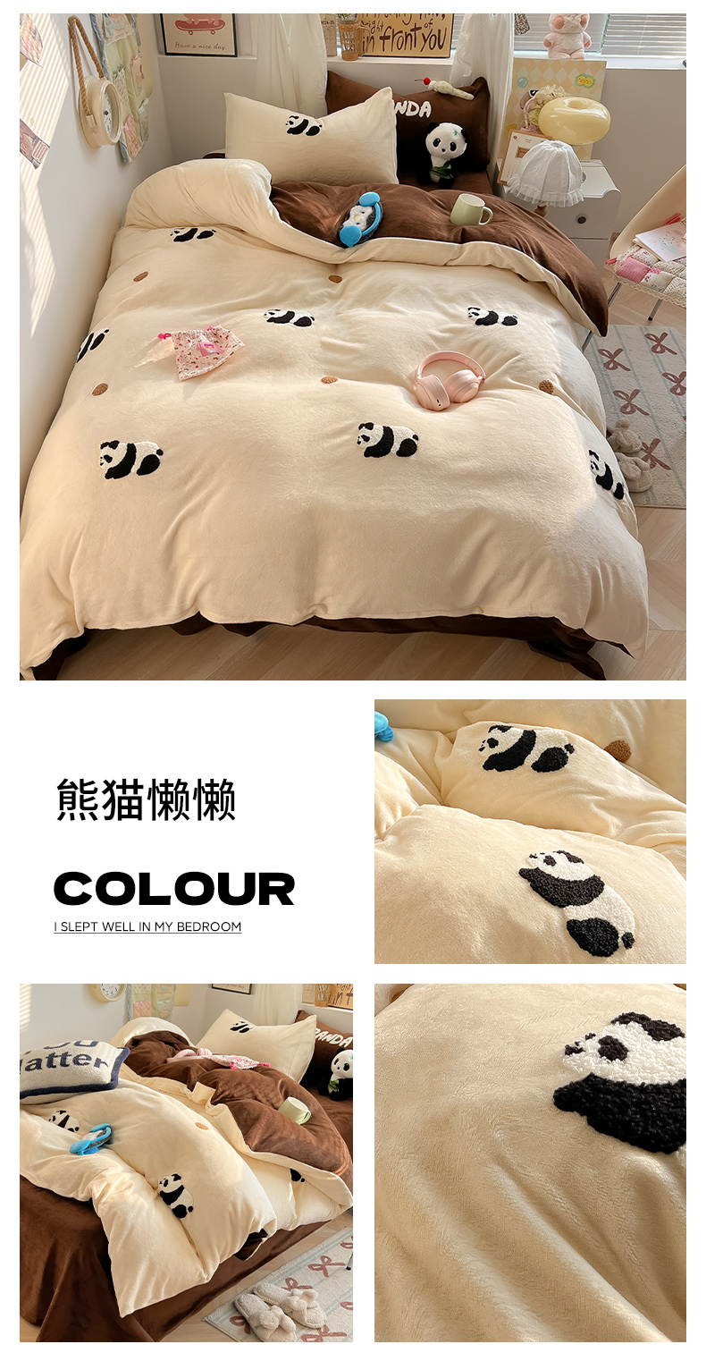 (总)韩都家居 2025新款牛奶绒毛巾绣四件套-系列一,熊猫懒懒,蛋糕猫-粉格,蛋糕猫-兰格,欢乐狗,腊肠狗,圣诞树,小白鸭