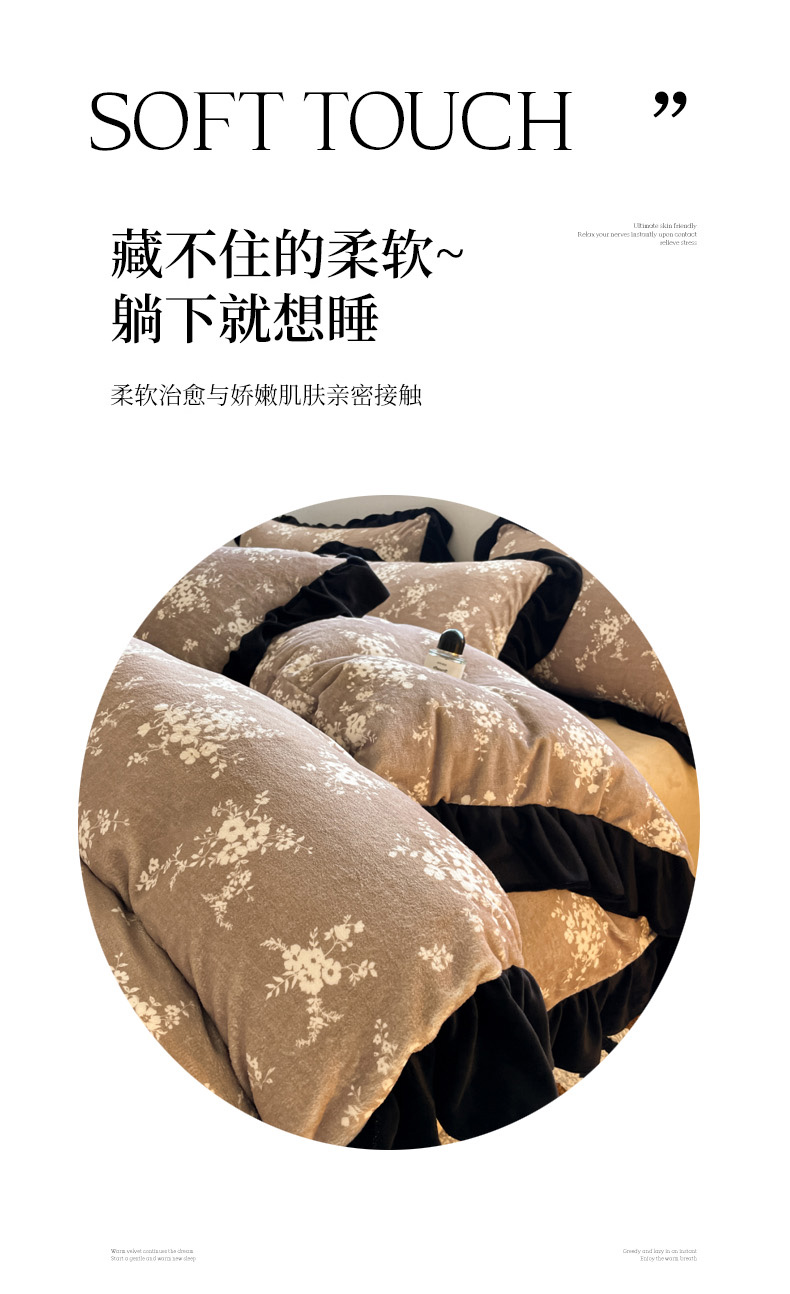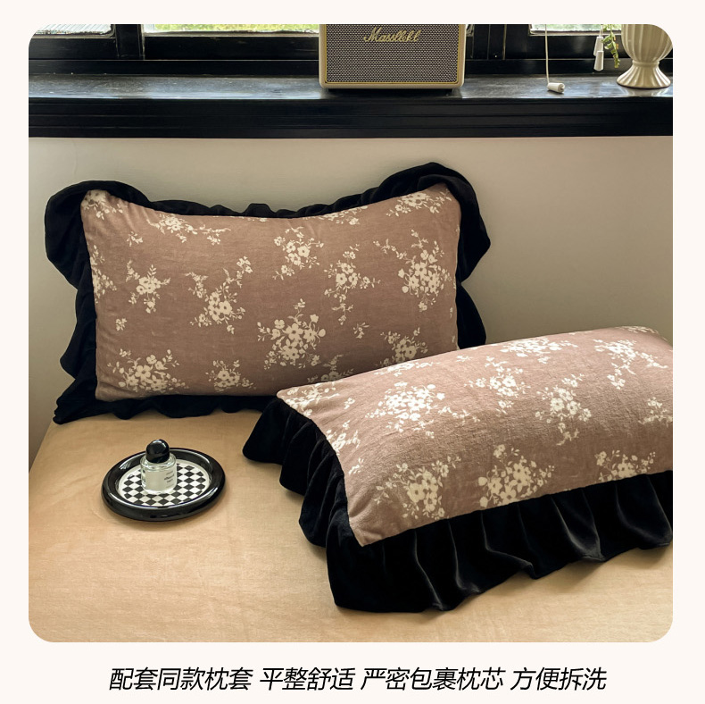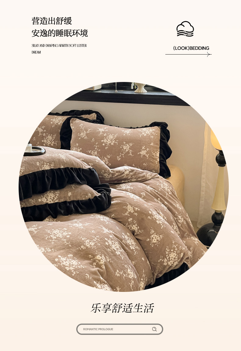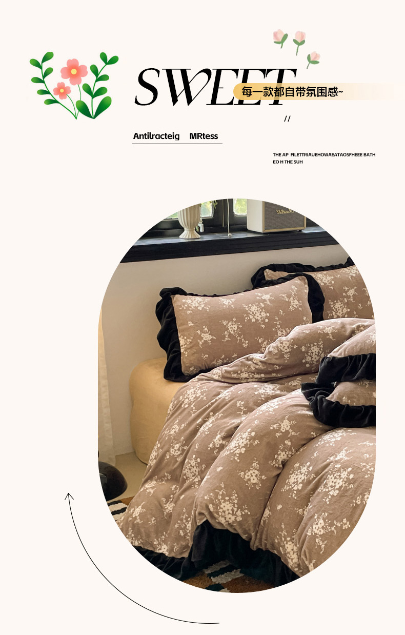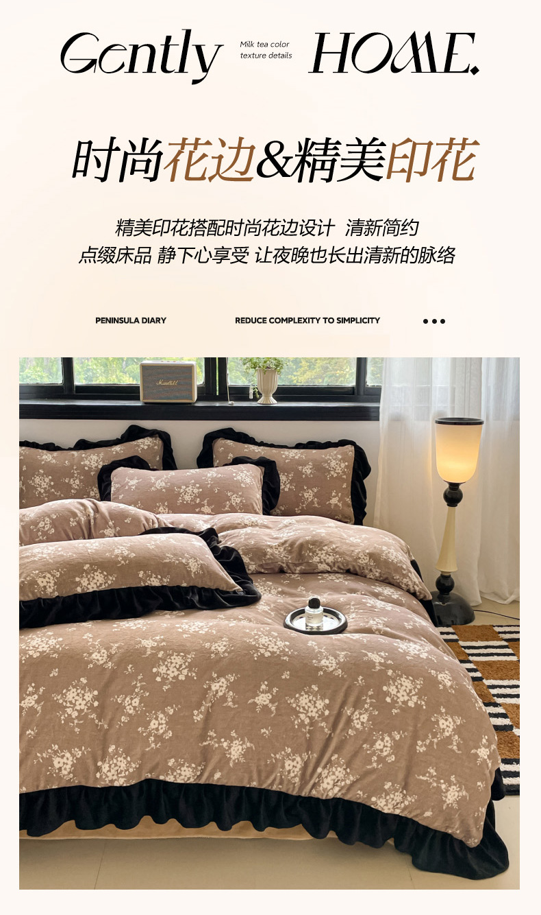 当前位置: 91家纺网 > 商品网购 > 床品套件 > 四件套 > 牛奶绒四件套 > 慕澄家纺 2025新款赫本风牛奶绒花边款四件套 花边款-迷情花
