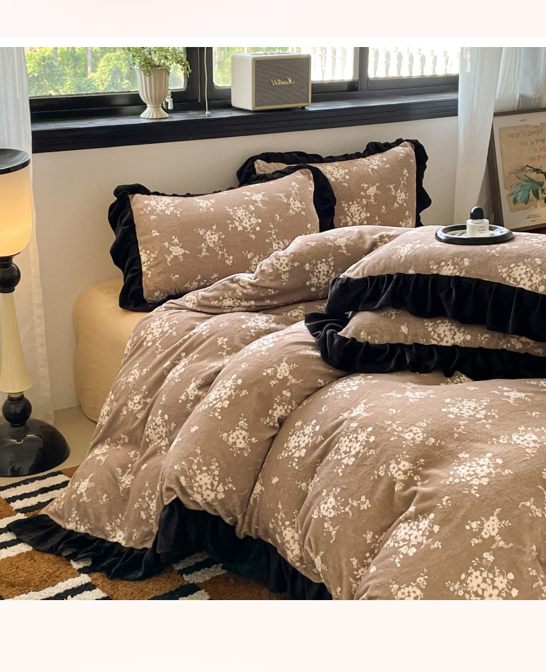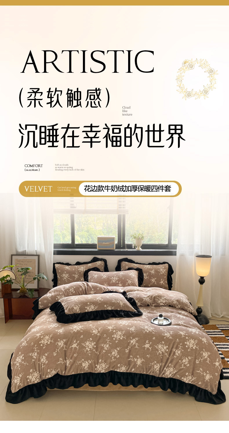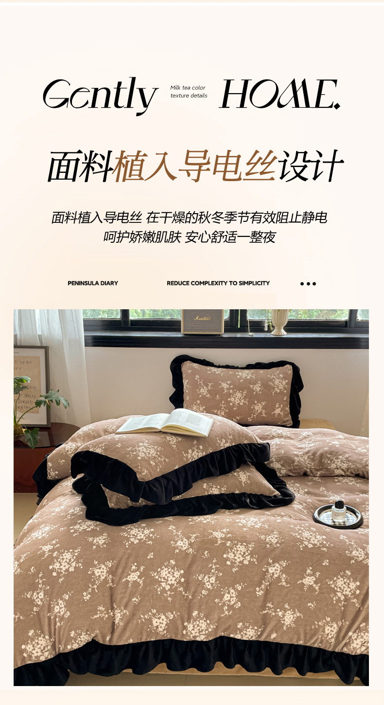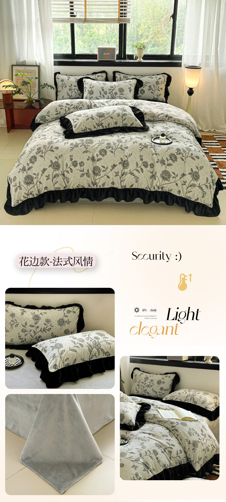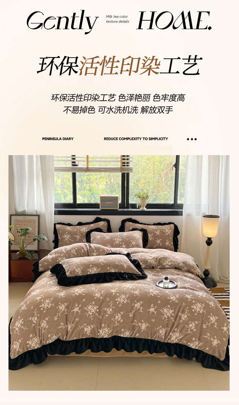 当前位置: 91家纺网 > 商品网购 > 床品套件 > 四件套 > 牛奶绒四件套 > 慕澄家纺 2025新款赫本风牛奶绒花边款四件套 花边款-迷情花