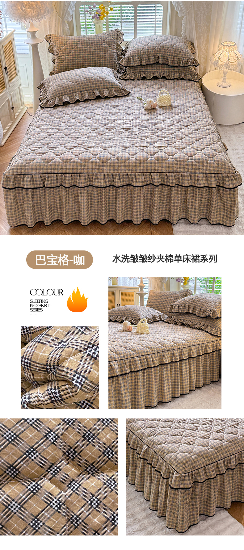(总)优家居 2025新品水洗棉夹棉床裙单件三件套韩版水洗皱皱纱夹棉床盖床罩直播爆款,莓好时光,爱心蝴蝶结,巴宝格-咖,豹纹-咖,蝶舞芳华,繁花似锦,粉色猫猫,粉雾结语,花花田园,秘园絮语,陌上花开,紫雾花园
