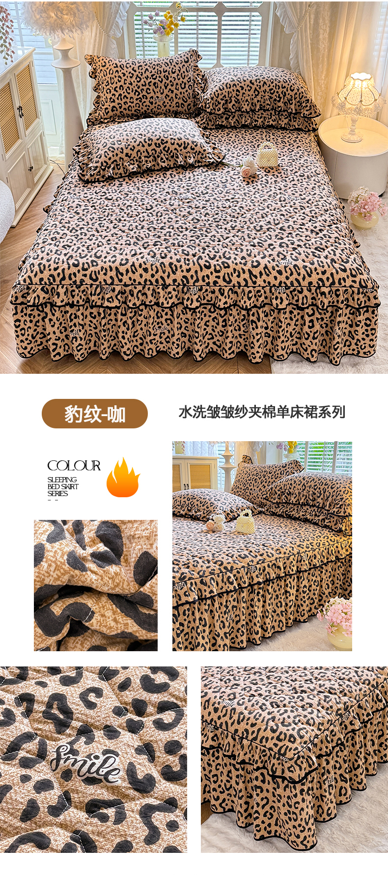 (总)优家居 2025新品水洗棉床裙四件套韩版糯糯棉水洗皱皱纱床罩直播爆款,豹纹-咖,爱心蝴蝶结,巴宝格-咖,蝶舞芳华,繁花似锦,粉色猫猫,粉雾结语,花花田园,莓好时光,秘园絮语,陌上花开,紫雾花园