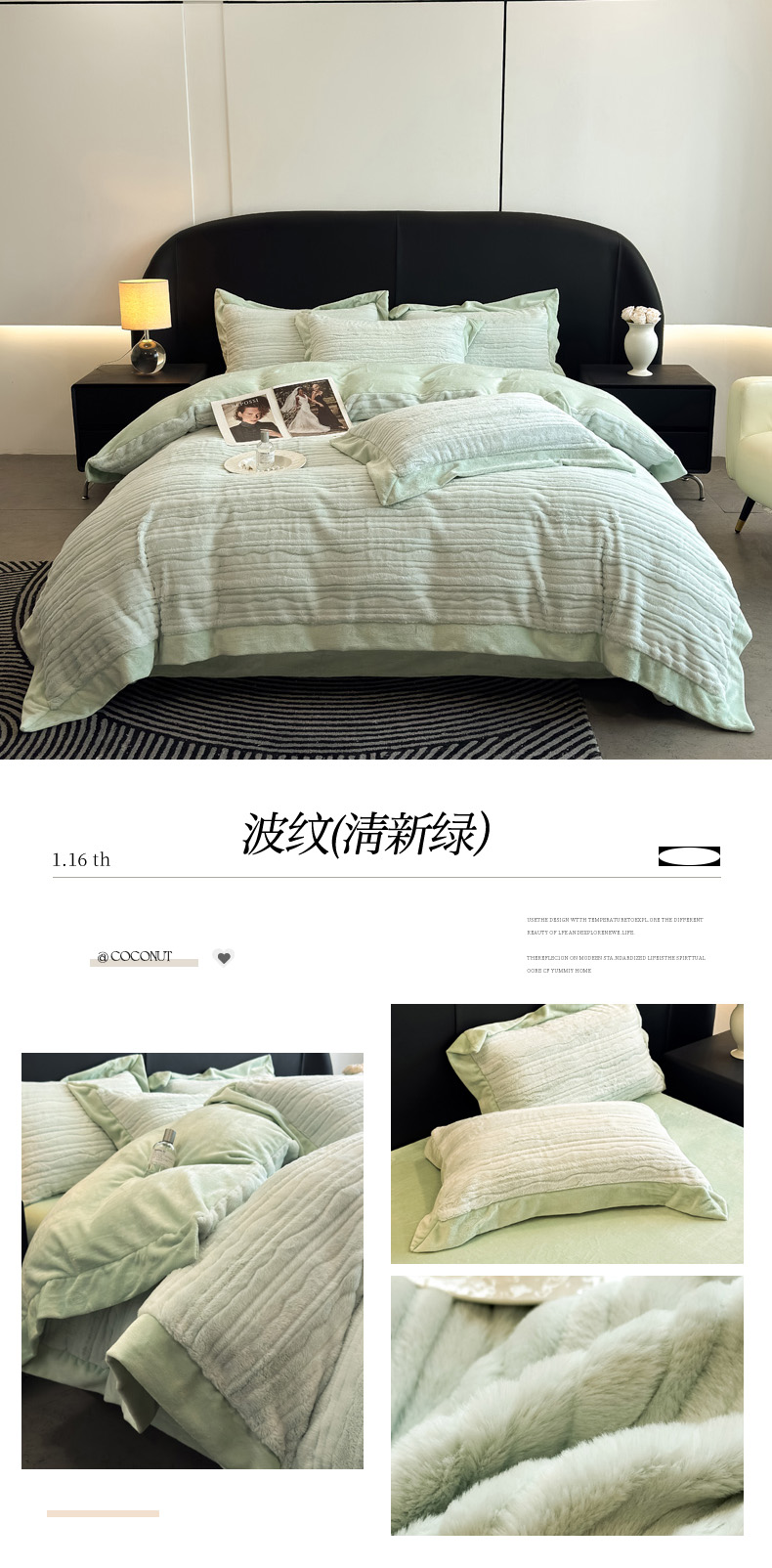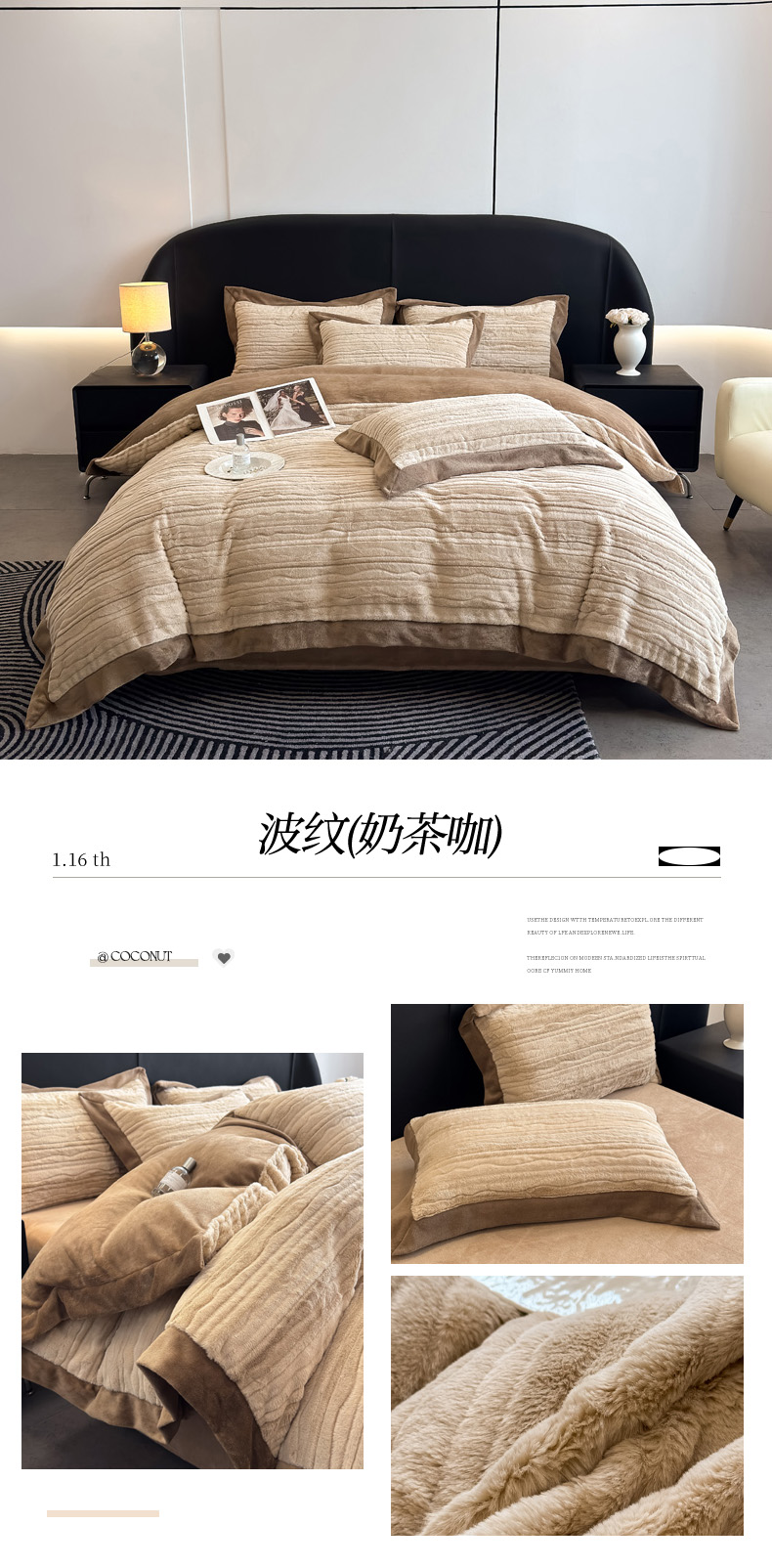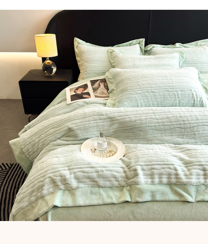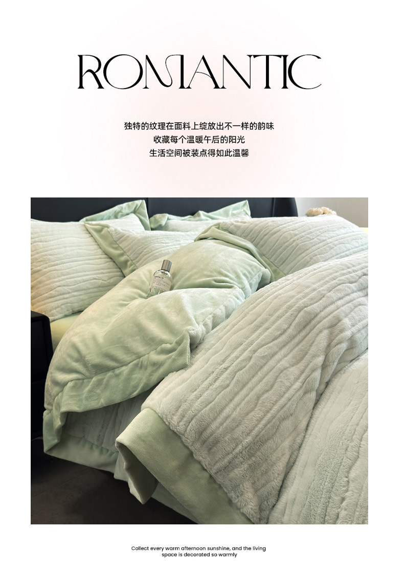 商品名称:九花鹿 2025新款380克宽边丹麦皮草绒四件套-波纹系列 波纹-梦境粉