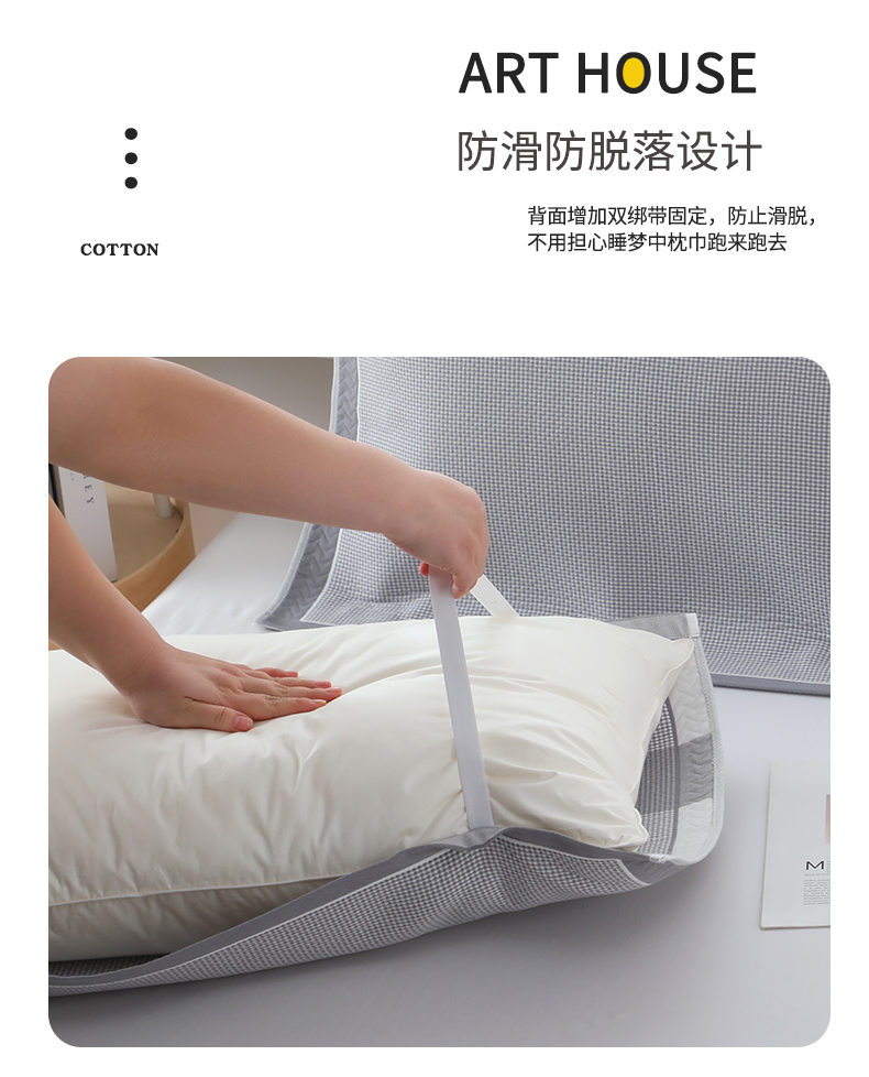 (总)娇兰毛巾 2025新款7A抗菌全棉A类加厚纱布枕巾双绑带枕巾,乐-灰,乐-蓝,乐-粉,乐-黄