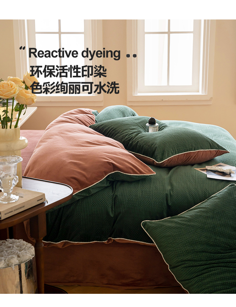 商品名称:例外 2025新款210克高克重天鹅绒华夫绒四件套 华夫绒-墨绿