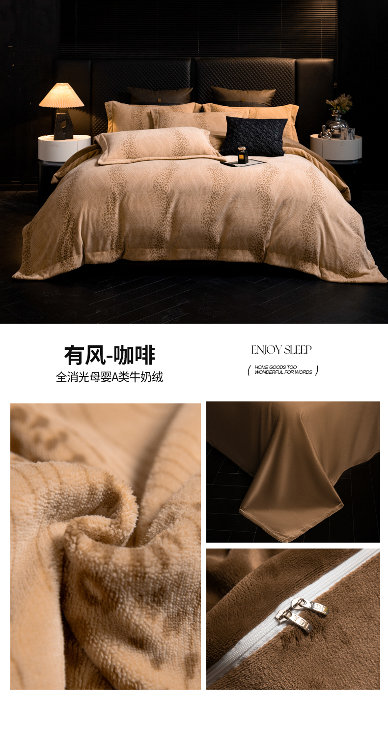 (总)2025新款 专版花型 高克重9.2斤全消光A类印花牛奶绒四件套-有风直播首选