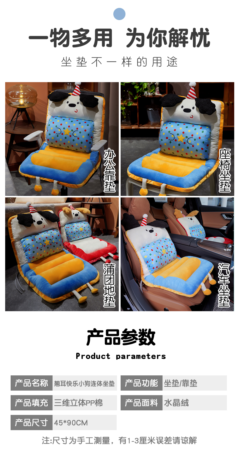 当前位置: 91家纺网 > 商品网购 > 居家布艺 > 坐垫/椅垫/沙发垫 > 椅垫 > 仟亿莱 2025新款翘耳小狗护腰横条连体坐垫 护腰横条糖豆小狗