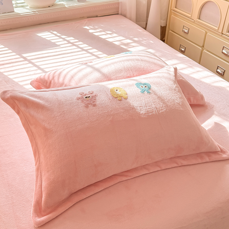 雨菲家纺 2025新款牛奶绒单品枕套枕套单件 牛奶绒小精灵粉