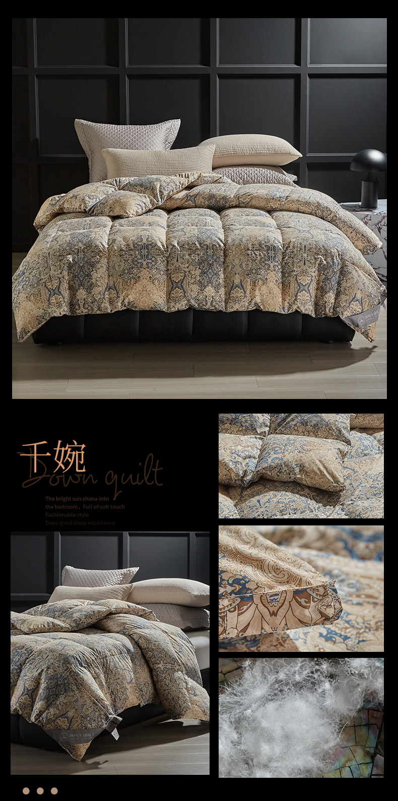 • 91家纺网 家纺一手货源 找家纺 (总)暖羽屋羽绒馆 2025新款白鹅绒丝被芯  羽绒丝被 羽毛被子 婚庆羽绒被 双人加厚冬被,恒运莱 金-角度一,恒运莱 金-角度二