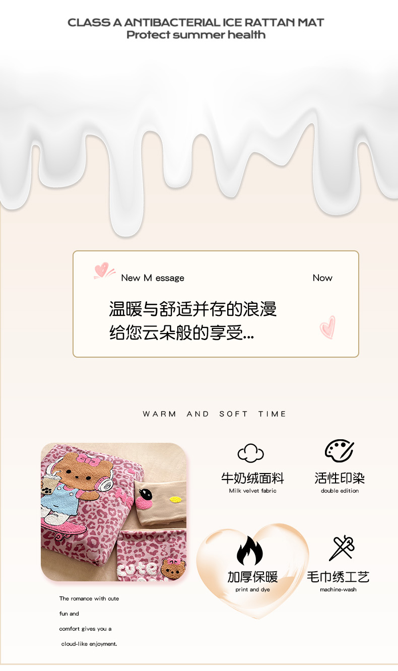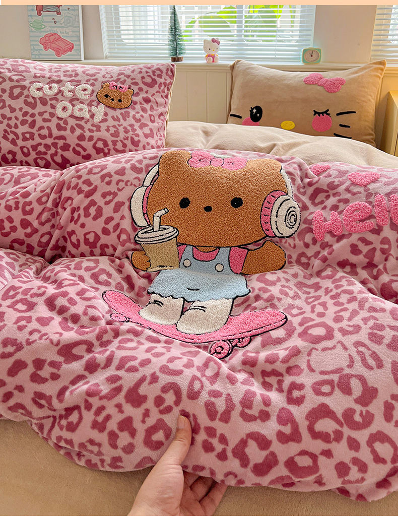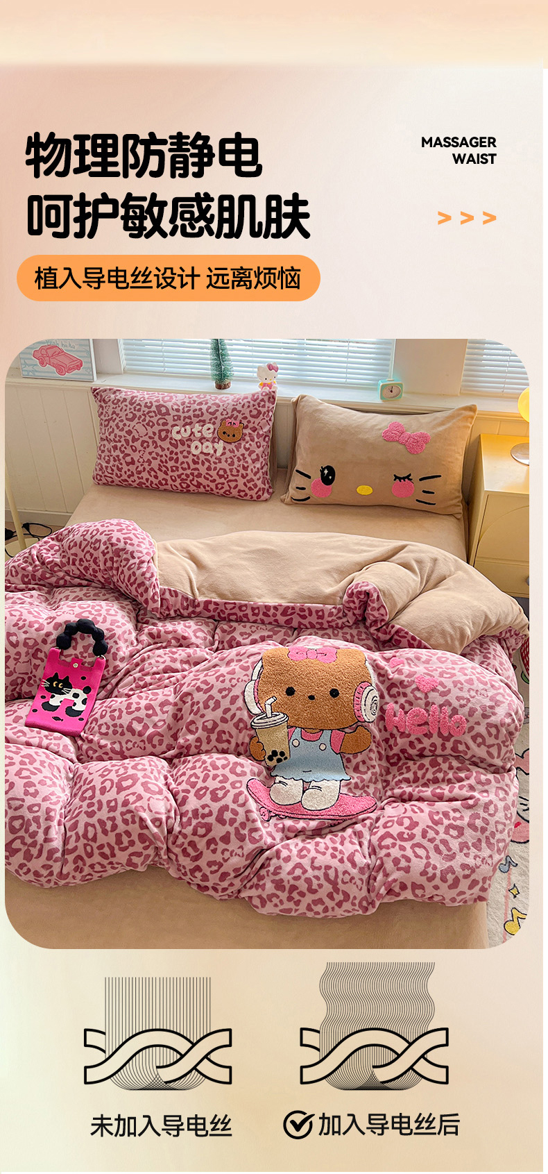 当前位置: 91家纺网 > 商品网购 > 床品套件 > 四件套 > 牛奶绒四件套 > 优选 2025新款高克重200g牛奶绒数码印花毛巾绣卡通四件套直播爆款电商爆款 黑皮粉
