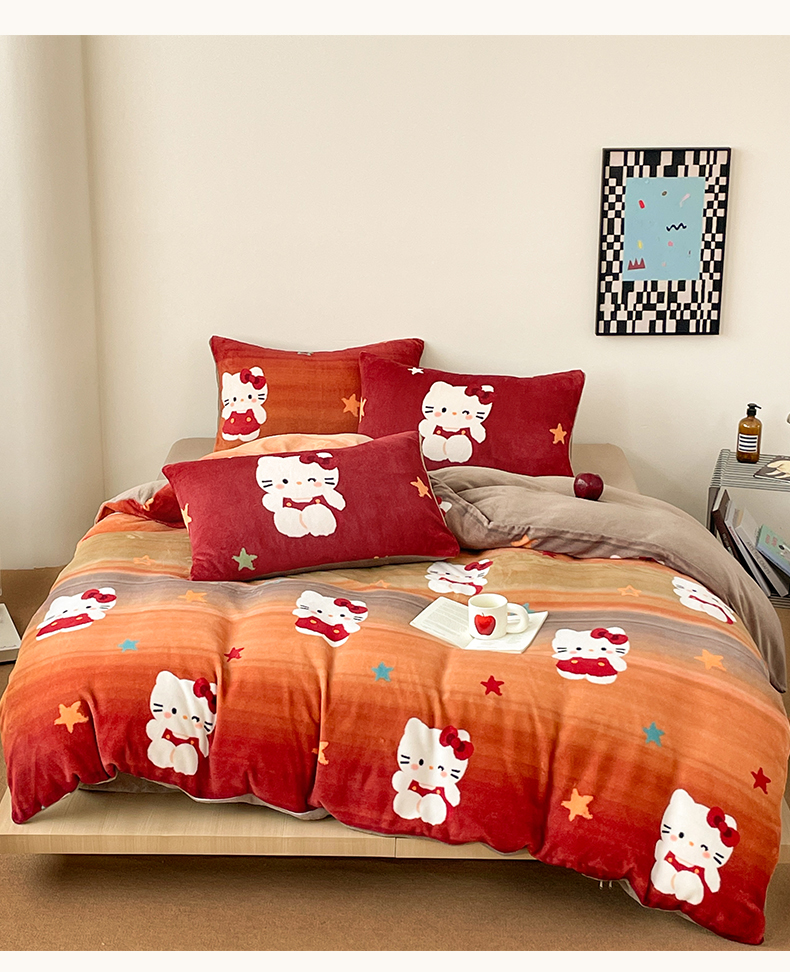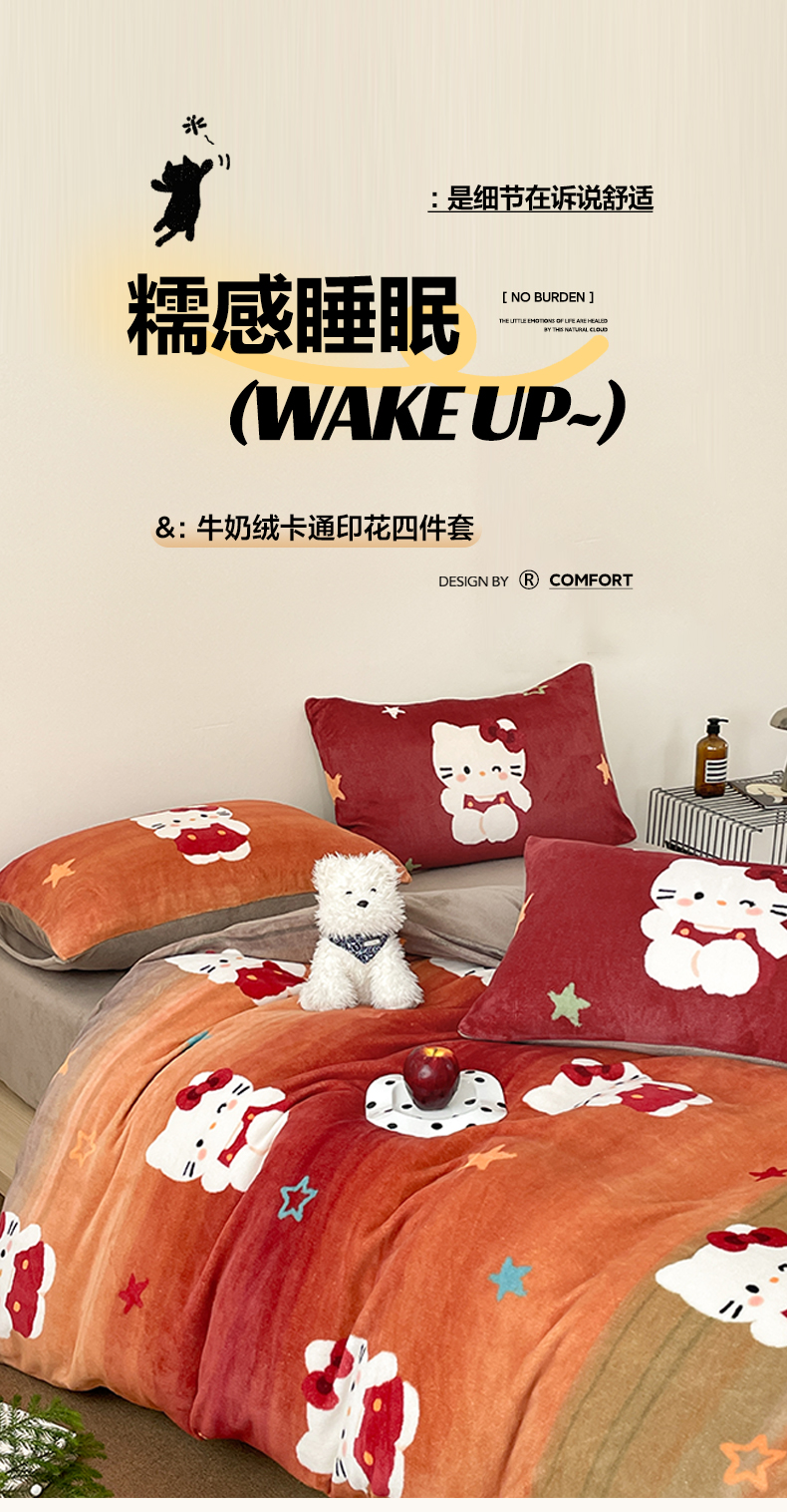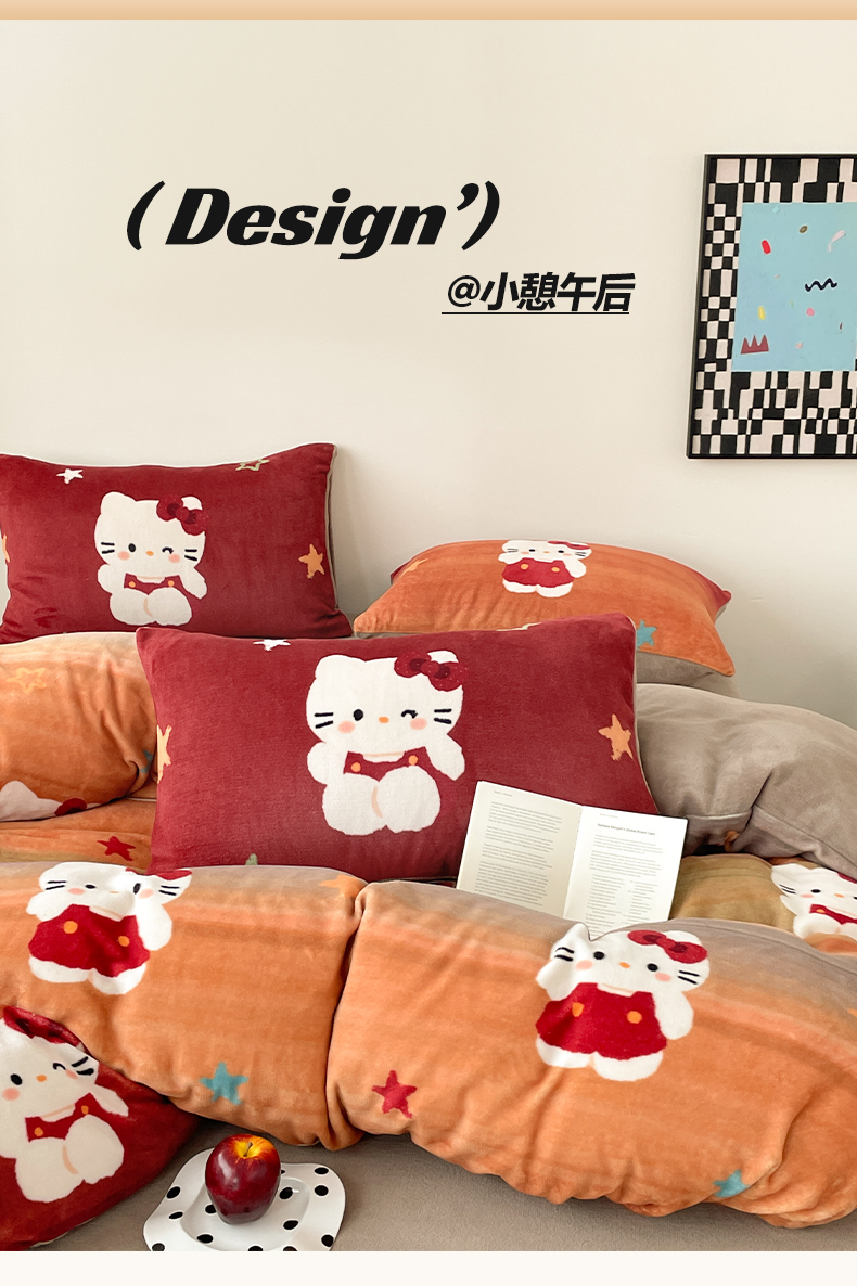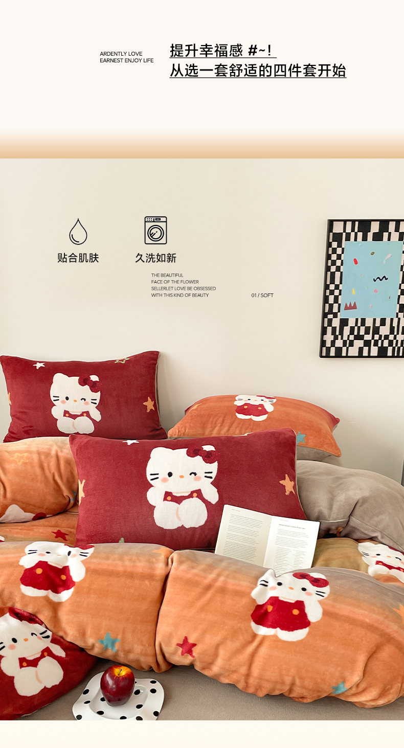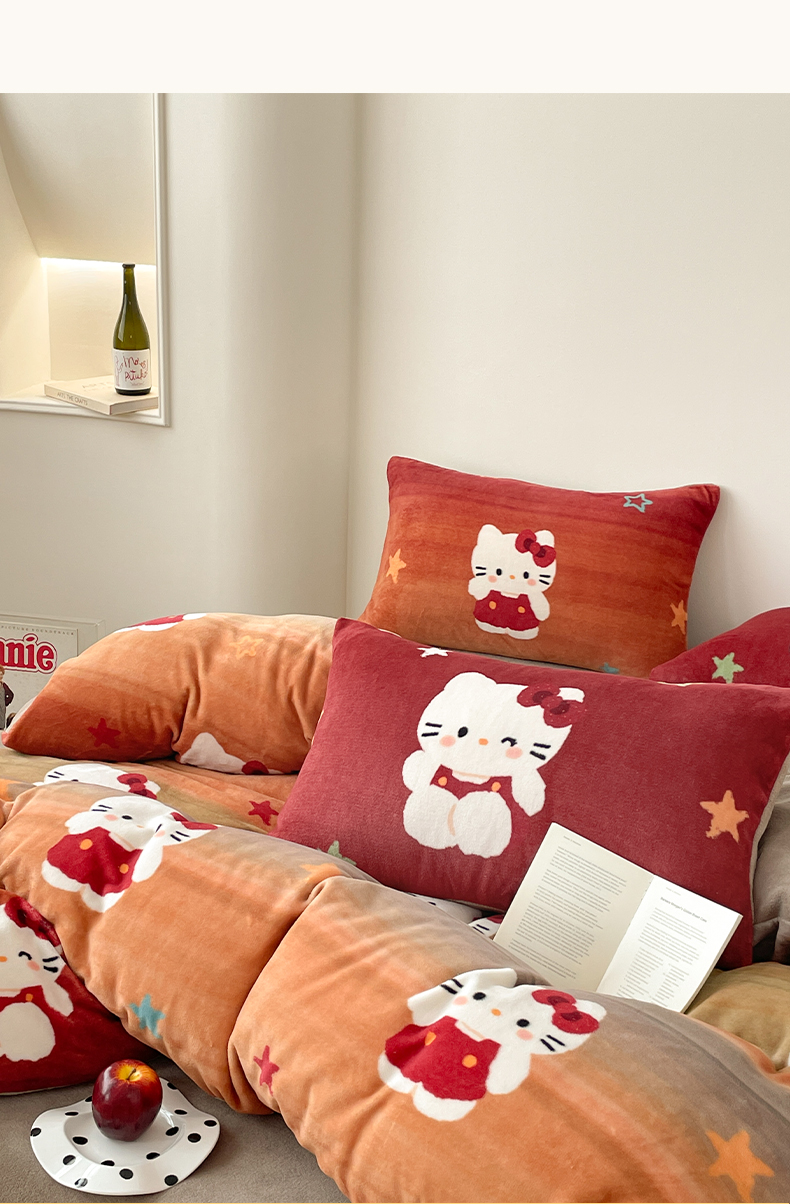 当前位置: 91家纺网 > 商品网购 > 床品套件 > 四件套 > 牛奶绒四件套 > 摩妮卡 2025新款牛奶绒枕套混搭卡通复古四件套 傍晚凯蒂猫
