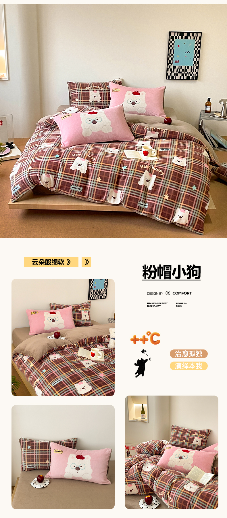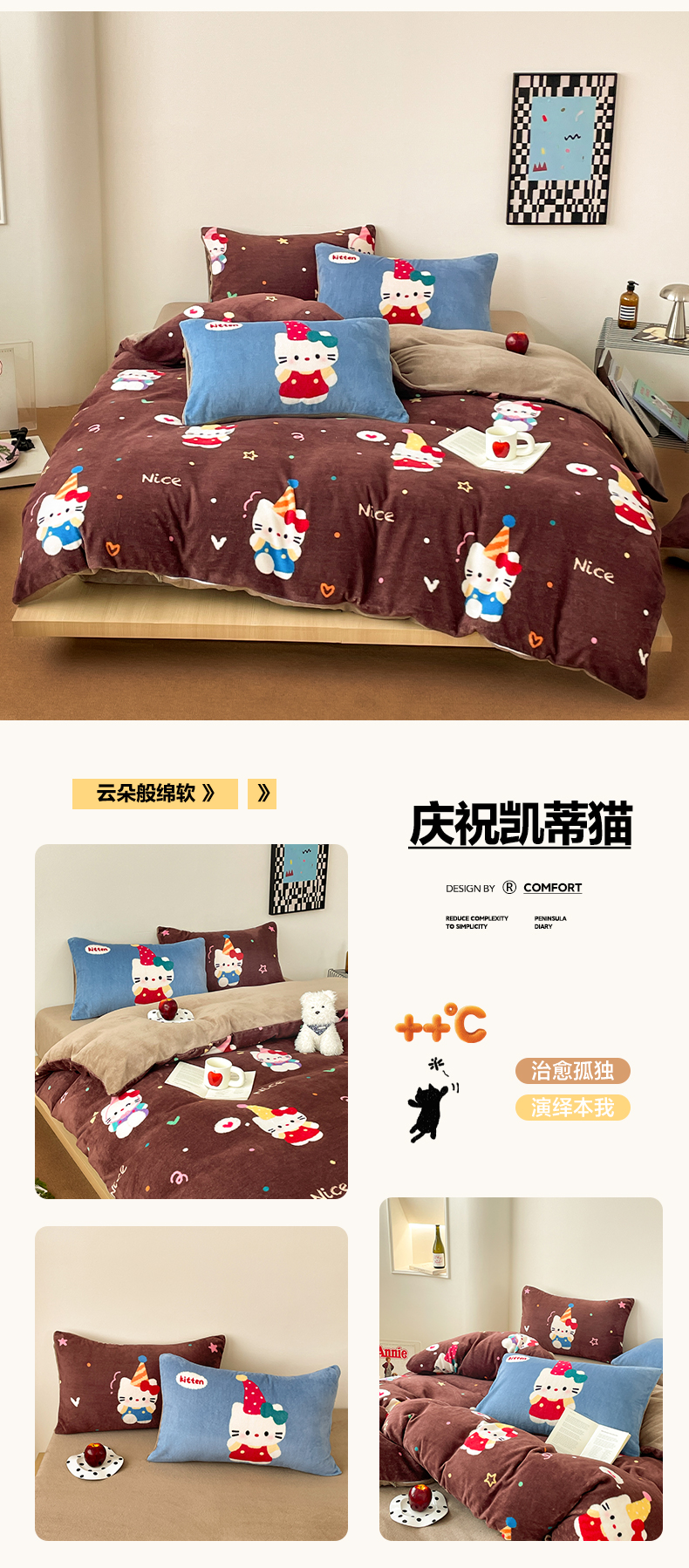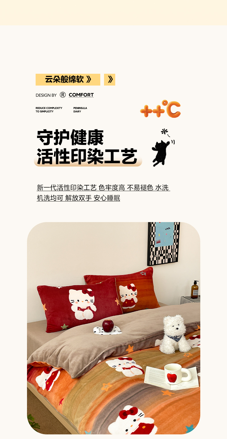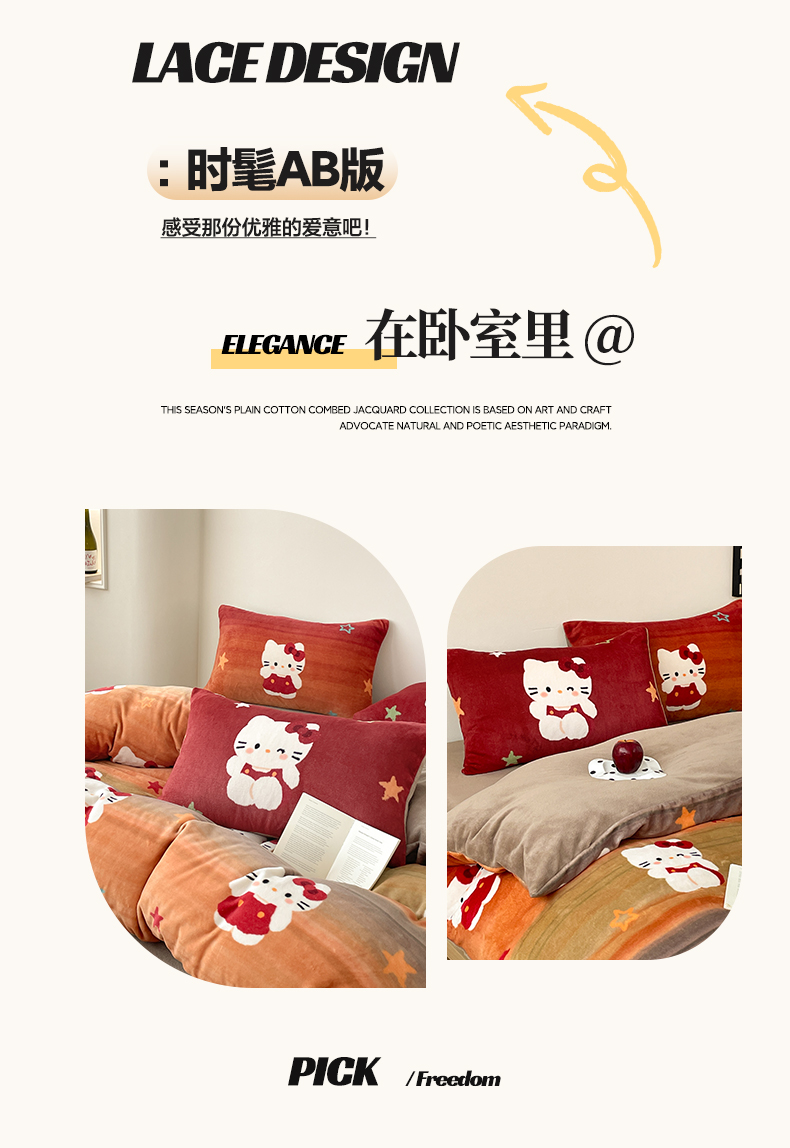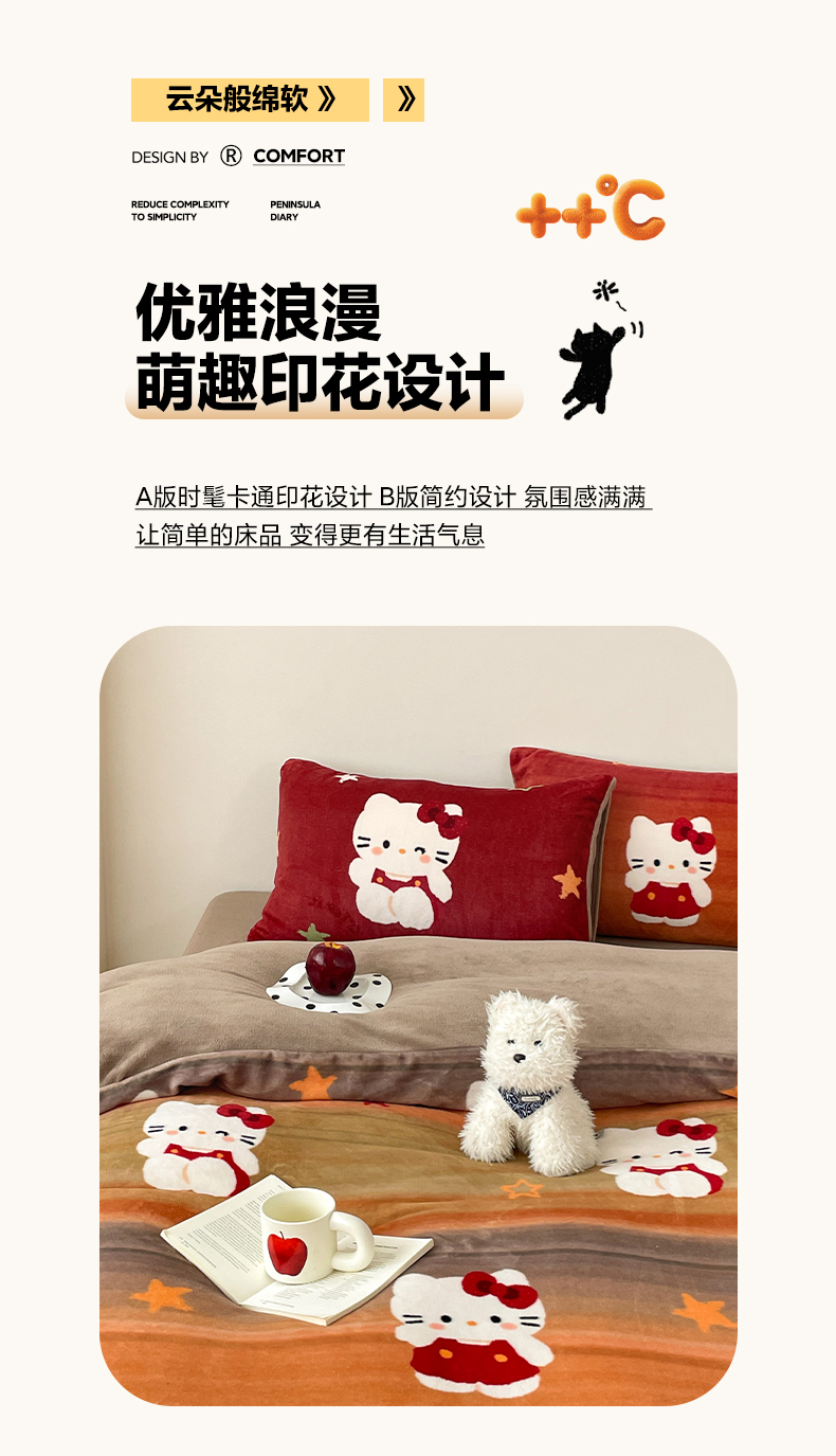 当前位置: 91家纺网 > 商品网购 > 床品套件 > 四件套 > 牛奶绒四件套 > 摩妮卡 2025新款牛奶绒枕套混搭卡通复古四件套 傍晚凯蒂猫