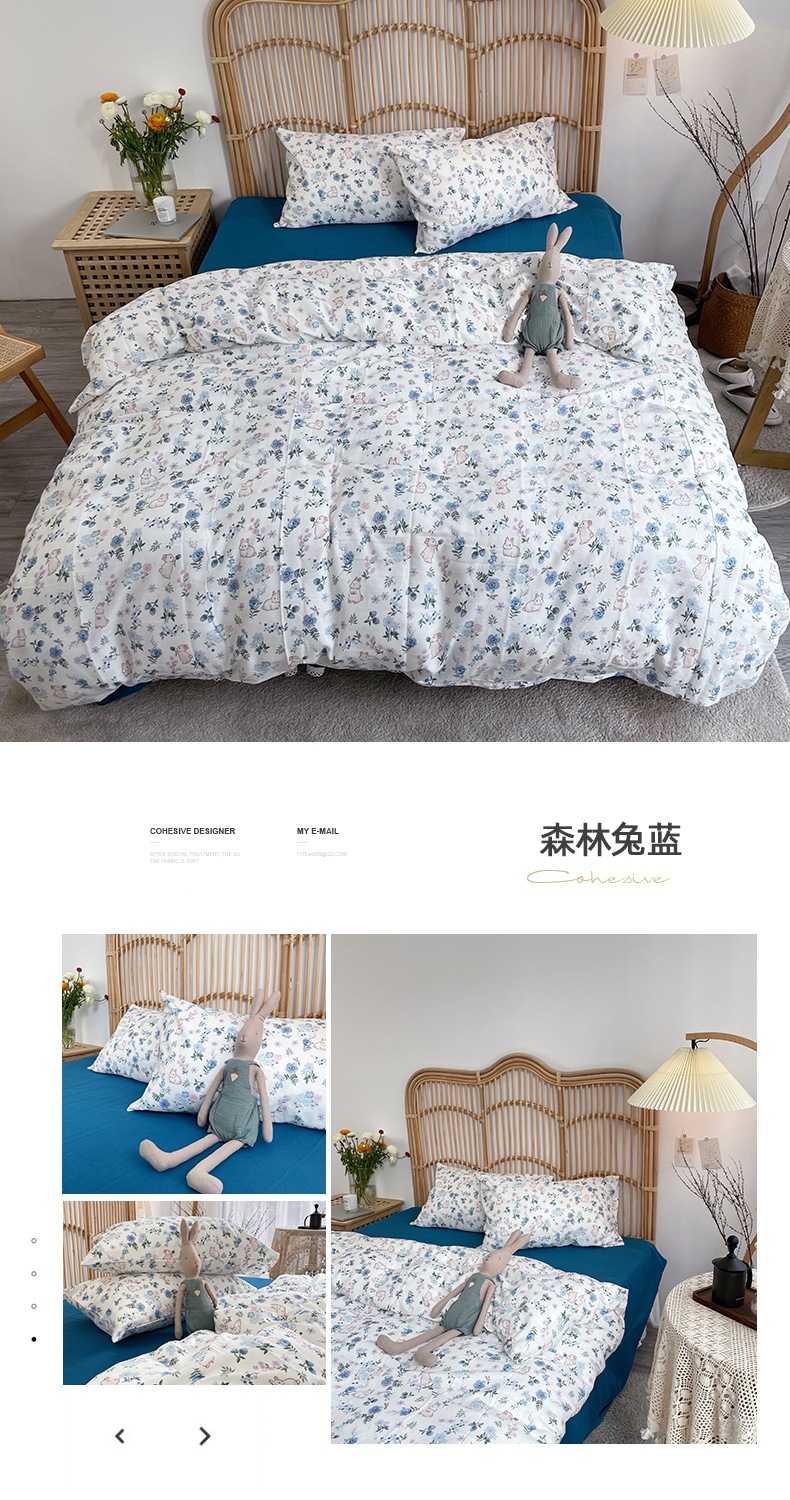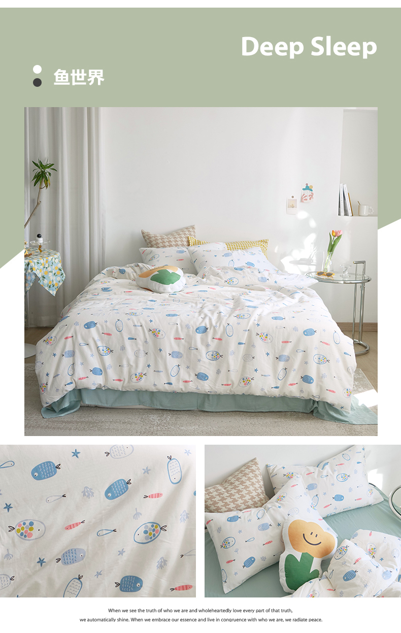 商品名称:源启生活 2025新款A类抗菌有氧双层纱全棉印花四件套 蓝色小熊