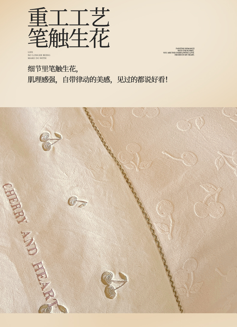 商品名称:鼎飞家纺 2025新款高克重牛奶绒立体烂花+刺绣四件套--初恋樱桃系列 初恋樱桃-奶昔