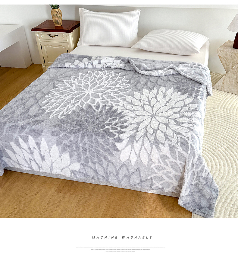 商品名称:枋梢家纺 2025新款万花筒阳离子提花镂空塔芙绒保暖午睡双层毛毯办公室盖毯 万花筒-浅灰