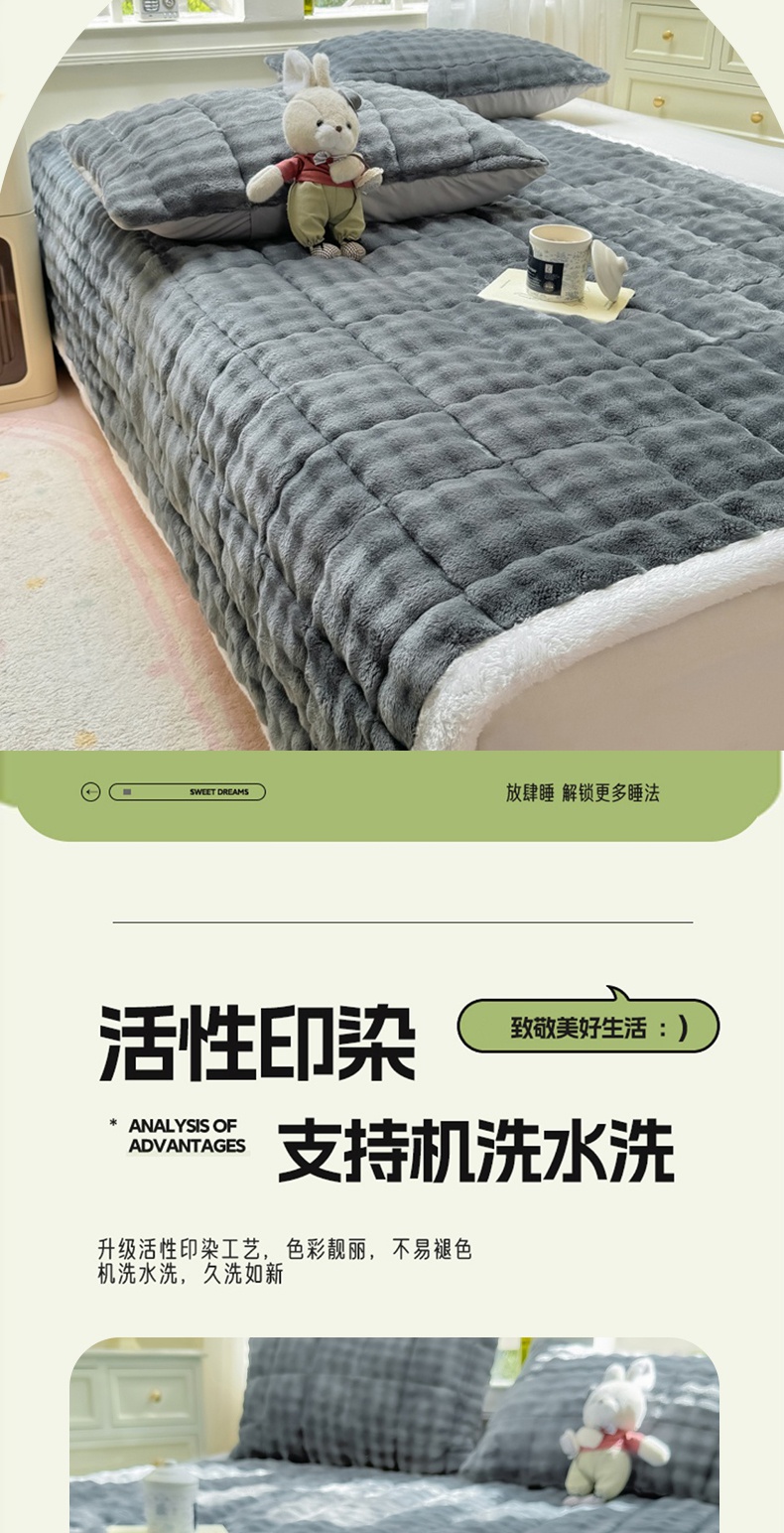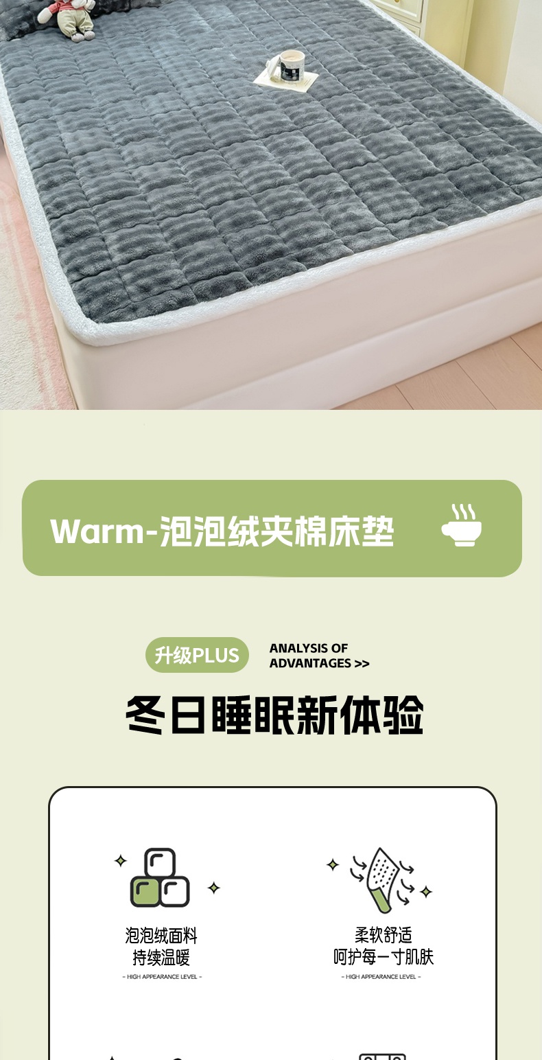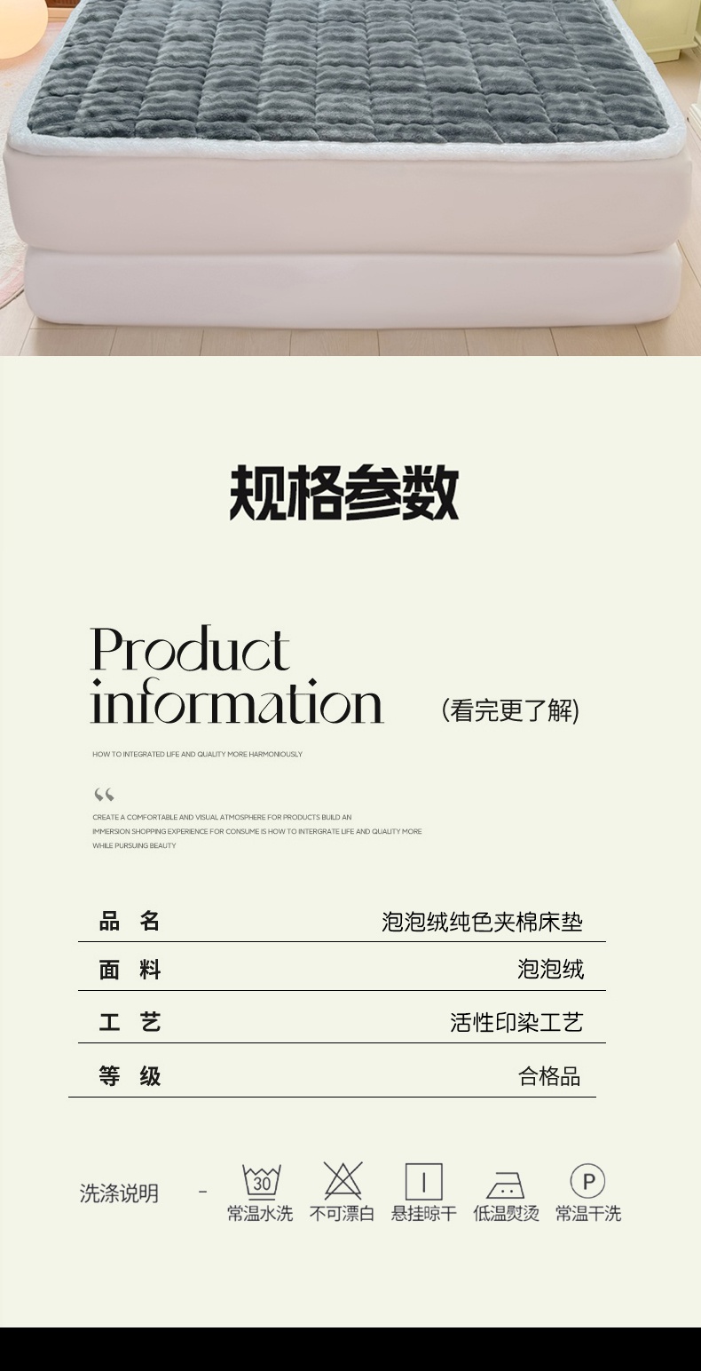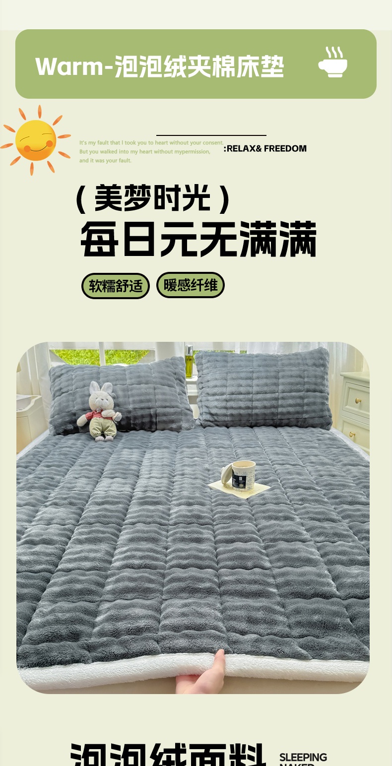 (总)麒东家纺 2025年新款兔毛绒泡泡绒夹棉床垫,粉色,咖色,绿色,米白,浅灰,深灰,天蓝
