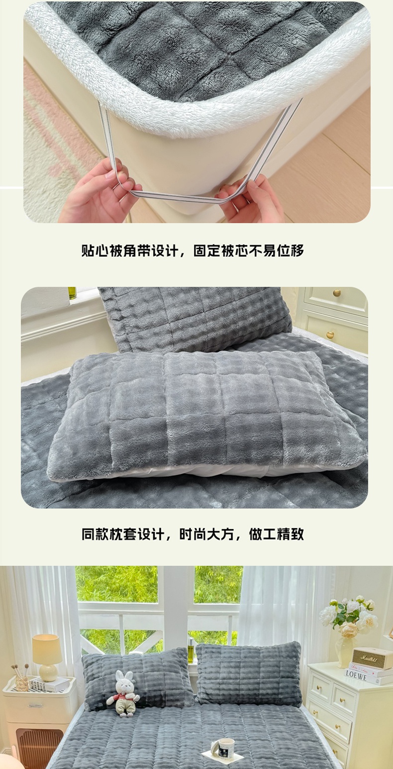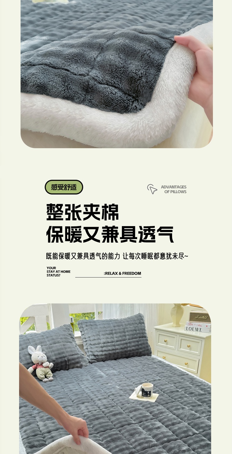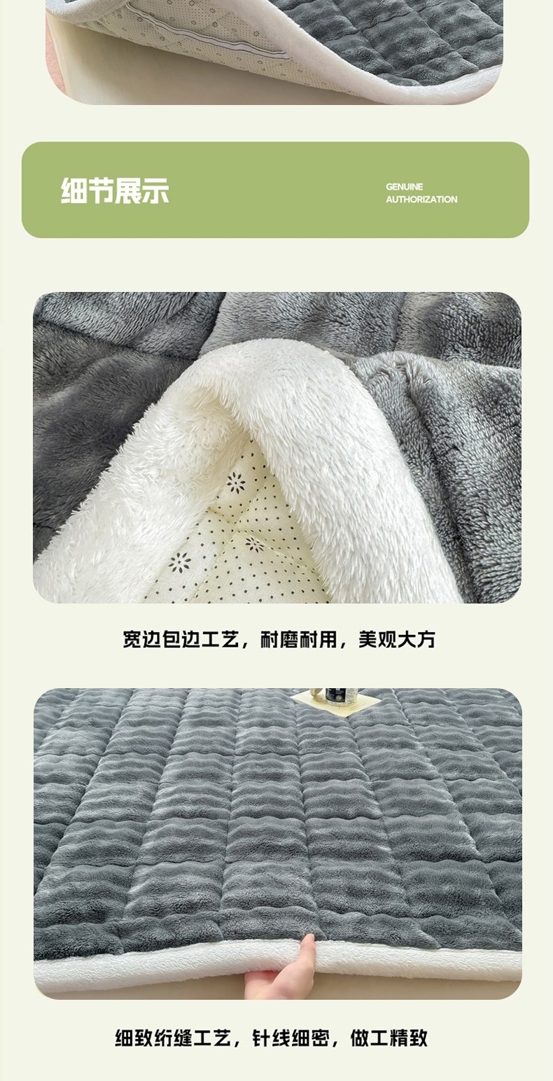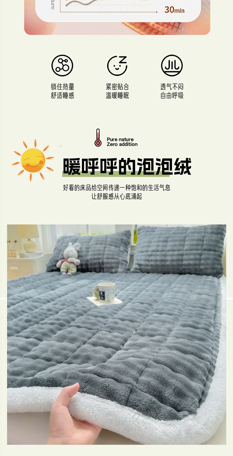 (总)麒东家纺 2025年新款兔毛绒泡泡绒夹棉床垫,粉色,咖色,绿色,米白,浅灰,深灰,天蓝
