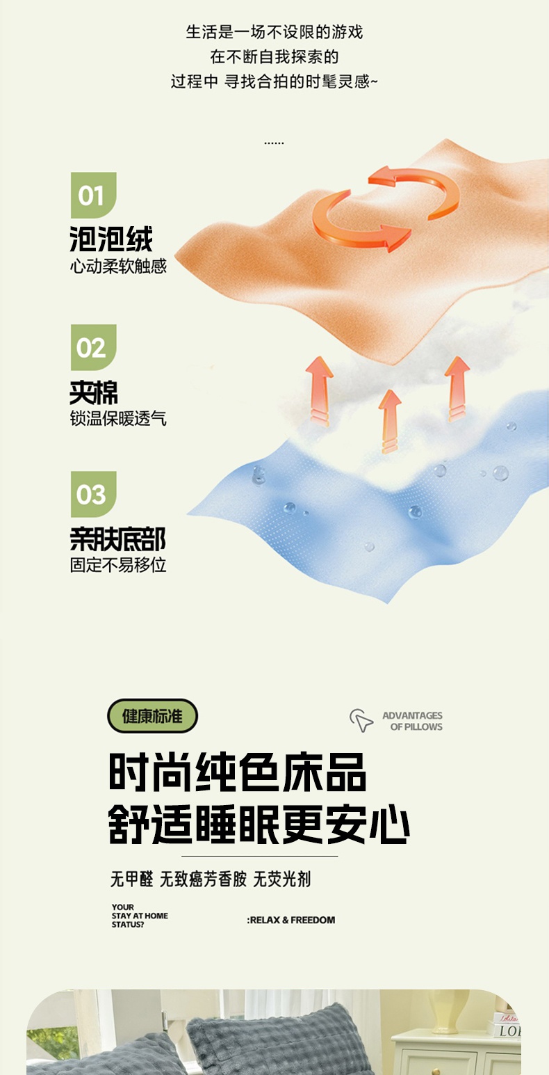 (总)麒东家纺 2025新款泡泡绒纯色夹棉床垫,绿色,深灰,本白,粉色,咖色,浅灰,天蓝,雾蓝,紫色