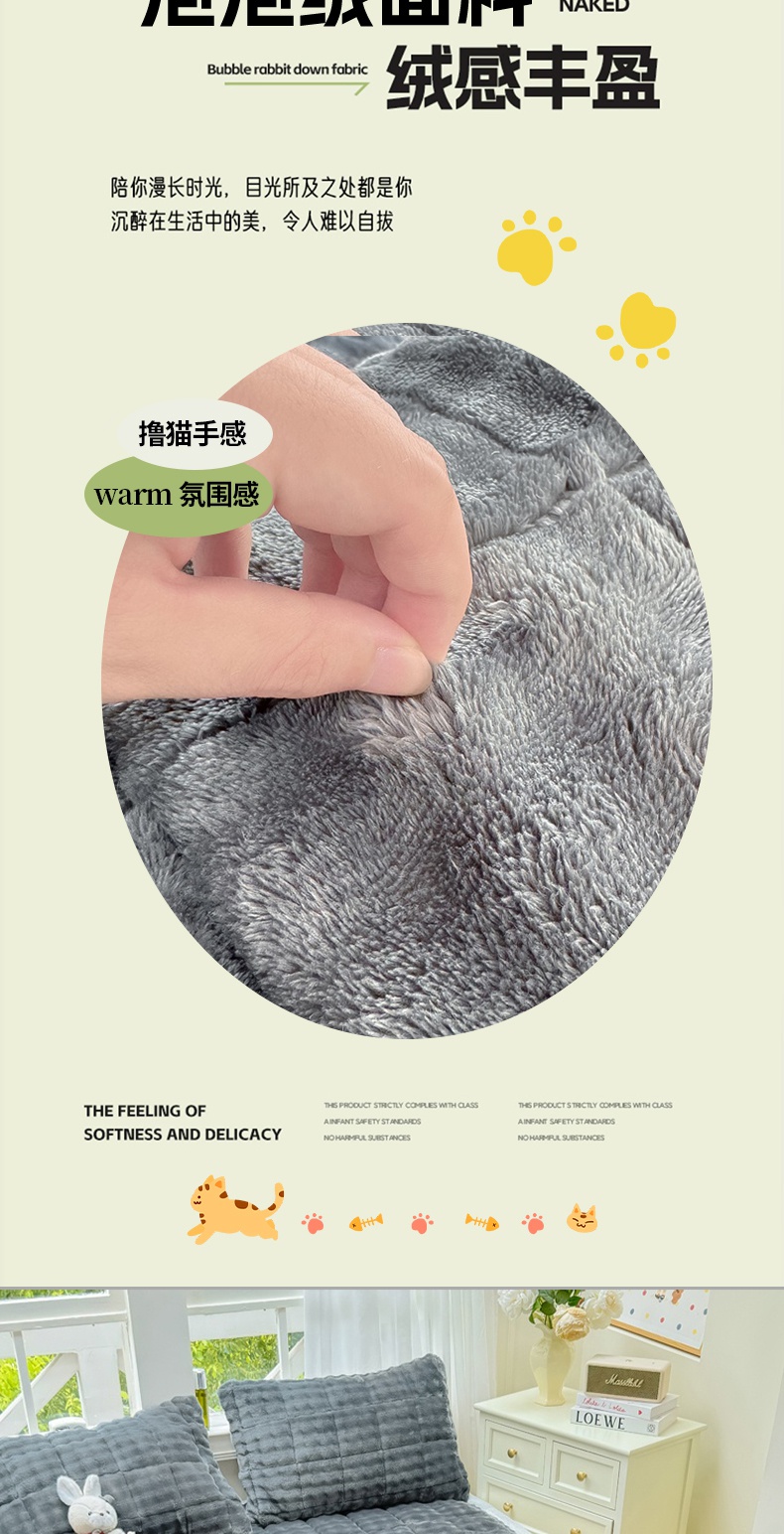 (总)麒东家纺 2025新款加厚纯色兔毛绒泡泡单床单,米白,天蓝,粉色,咖色,绿色,浅灰,深灰