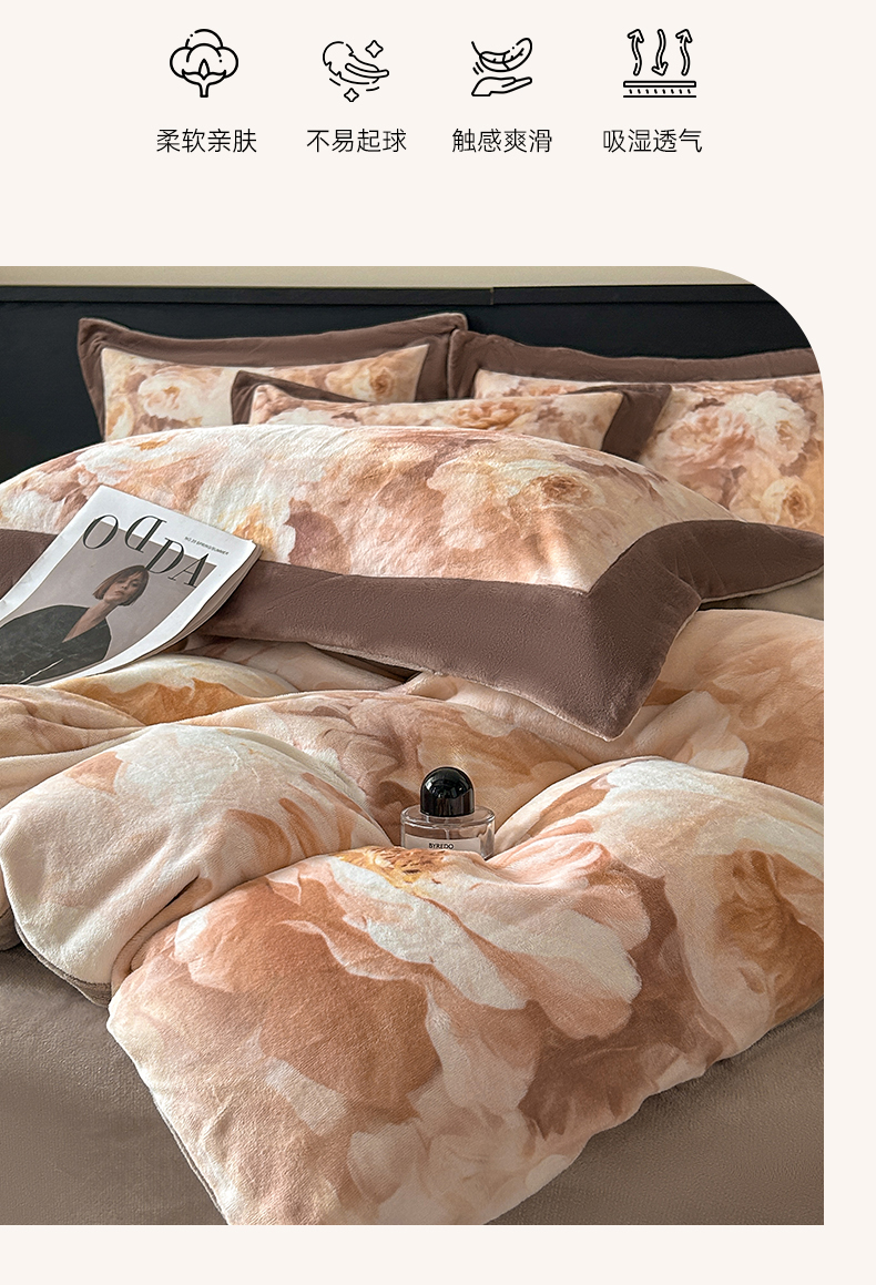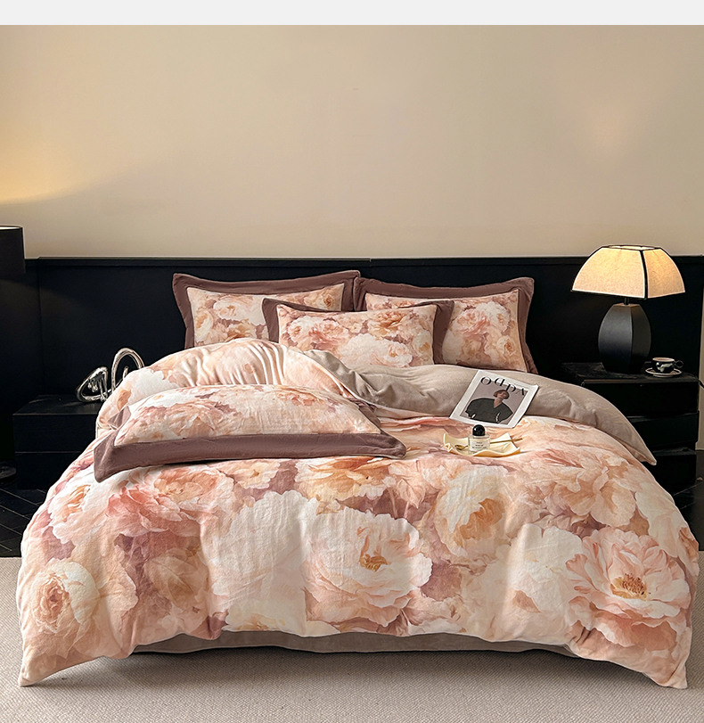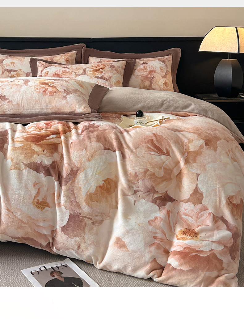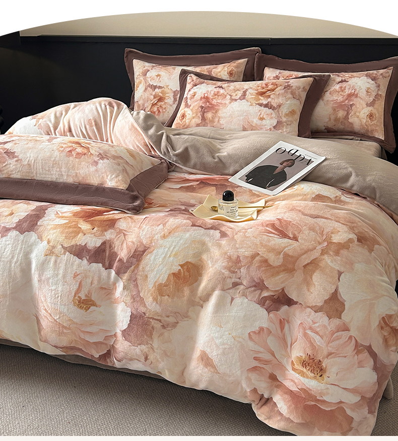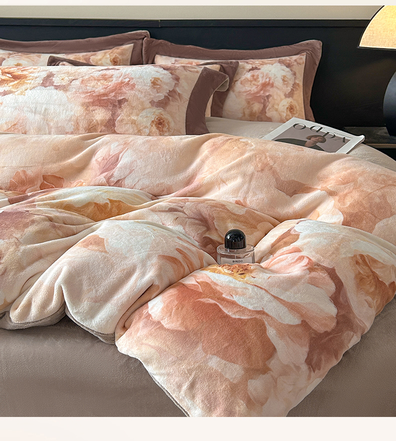 诺梵家纺 2025新款8斤加厚保暖金貂绒牛奶绒印花四件套 花枝如梦,花枝如梦