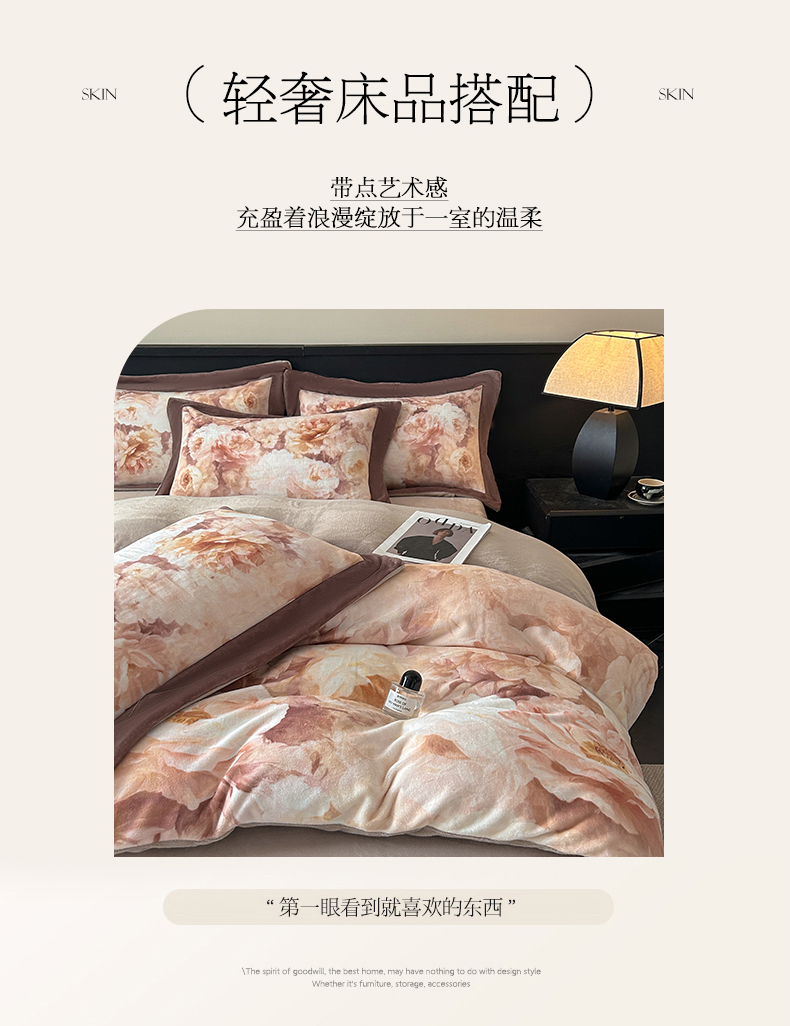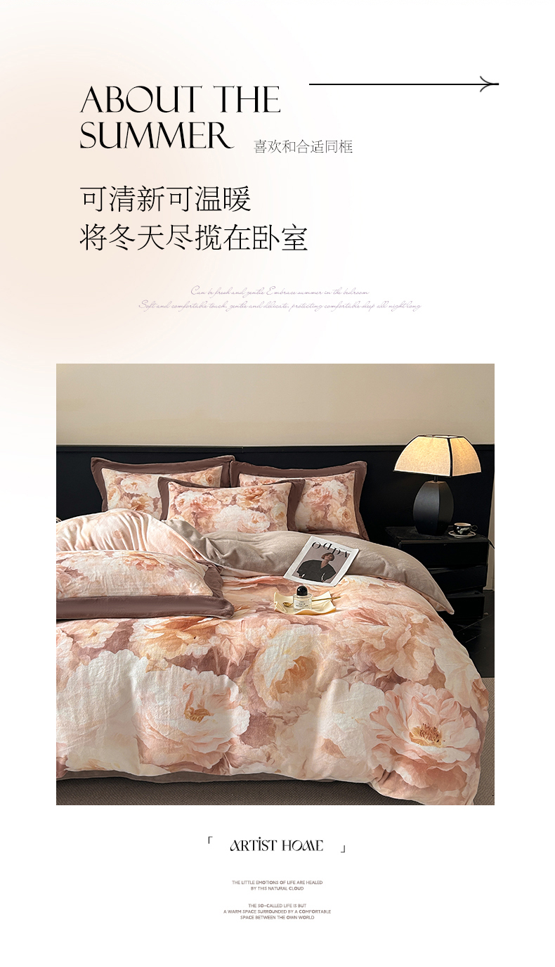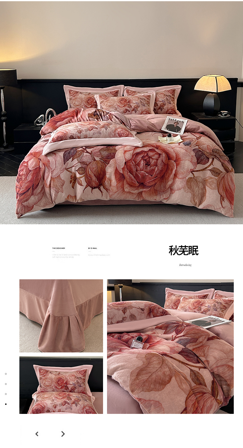 诺梵家纺 2025新款8斤加厚保暖金貂绒牛奶绒印花四件套 花枝如梦,花枝如梦