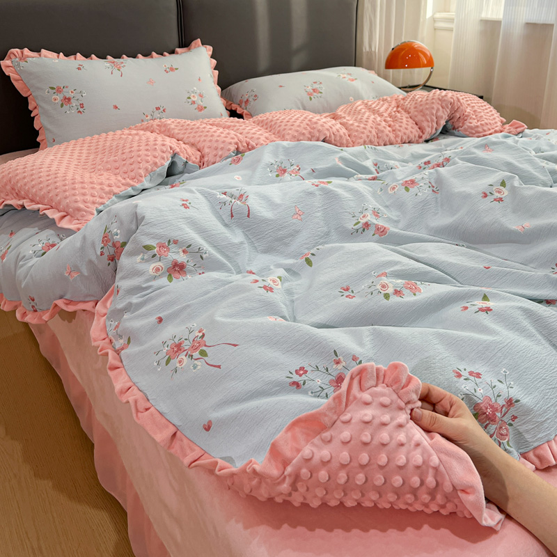 一比一家纺 2025新款保暖舒适云感纱➕绒加绒四件套 婉约