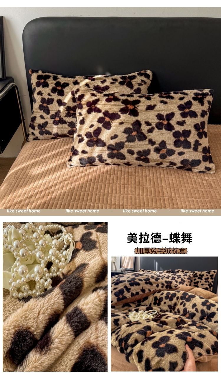 (总)乐窝家纺仓储 2025新款加厚保暖兔毛绒牛奶绒单品枕套单件枕头套-美拉德系列,豹纹灰,豹纹咖,蝶舞,虎纹,花语,轮回