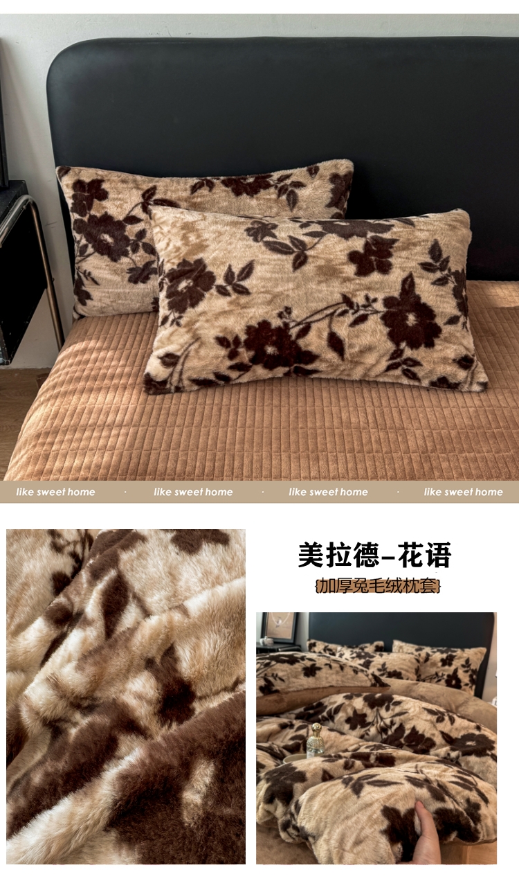 商品名称:乐窝家纺仓储 2025新款加厚保暖兔毛绒牛奶绒单品枕套单件枕头套-美拉德系列 蝶舞