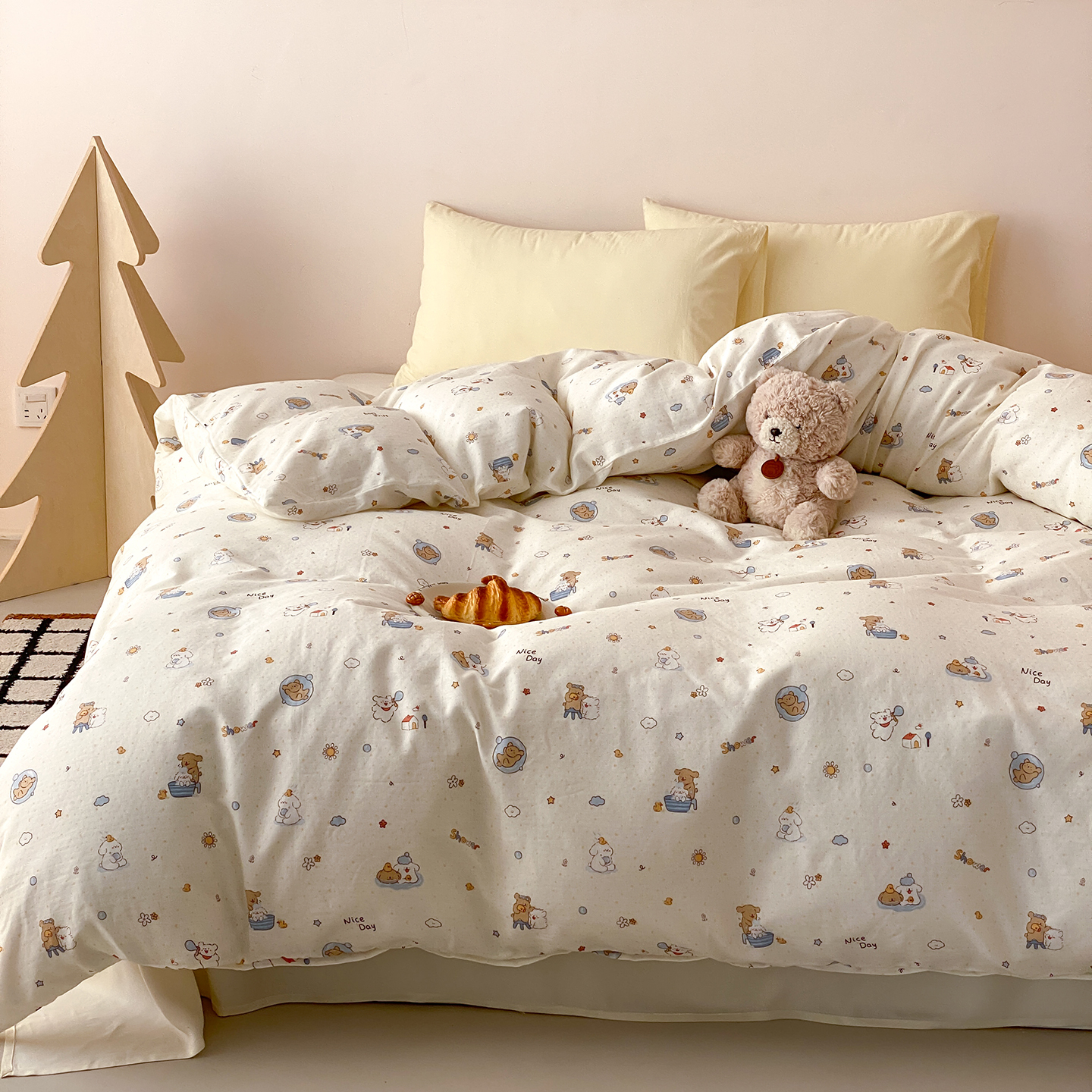 (总)8小时家纺 2025新款40s天然肌理双层纱四件套,斑点象,摇篮曲,泡泡布丁,星星人,快乐小狗,腊肠狗,小新