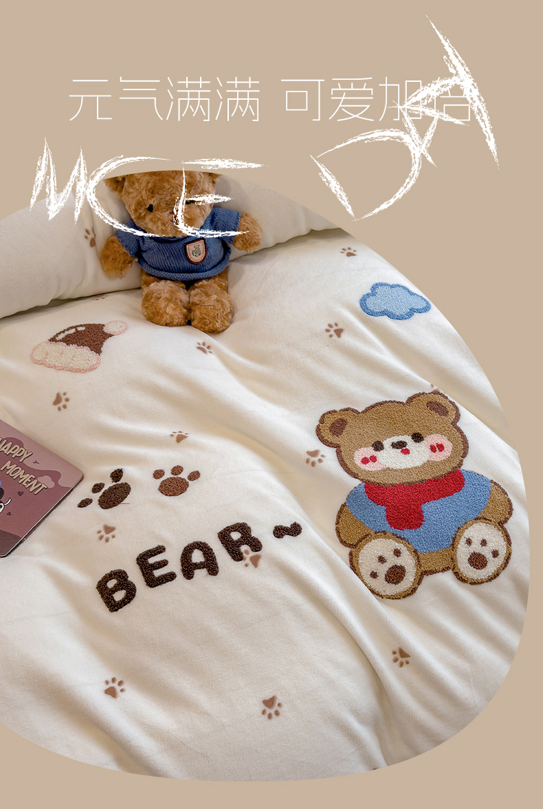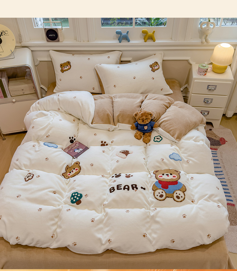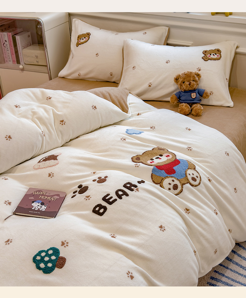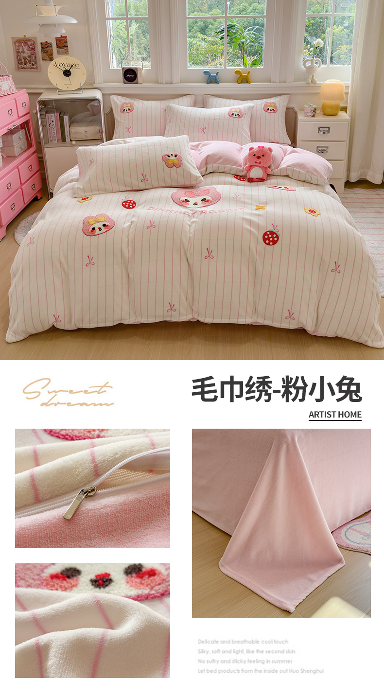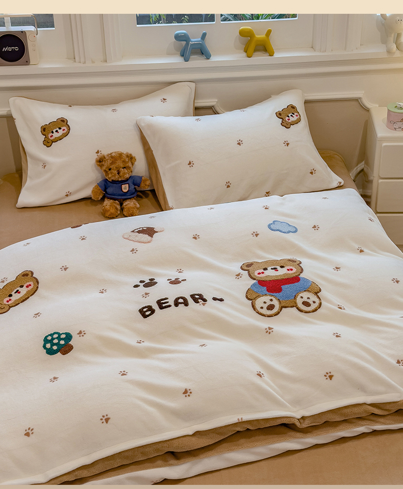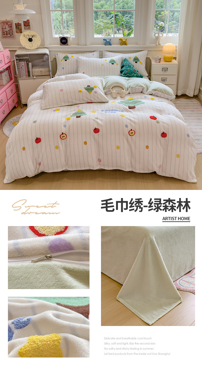 (总)兄弟坊 2025新款A类牛奶绒印花毛巾绣四件套,毛巾绣-暖暖熊,毛巾绣-粉小兔,毛巾绣-绿森林,毛巾绣-马戏团,毛巾绣-小花园