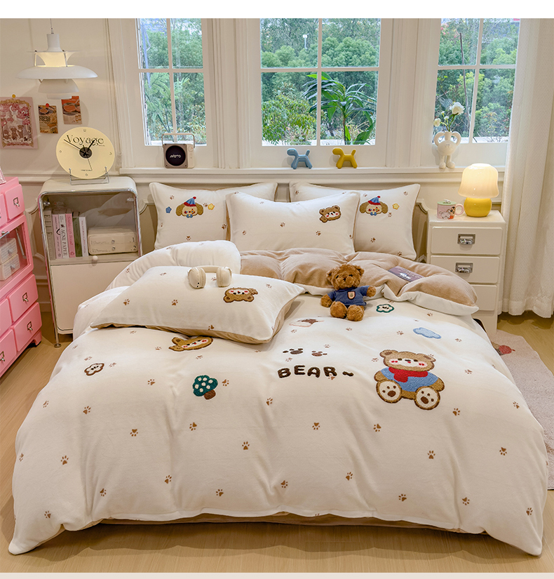(总)兄弟坊 2025新款卡通消光牛奶绒贴布绣四件套,小狗梦乡,有趣动物园,猫咪乐园,熊熊乐园,萌犬乐园,宠物旅行,甜点旅行