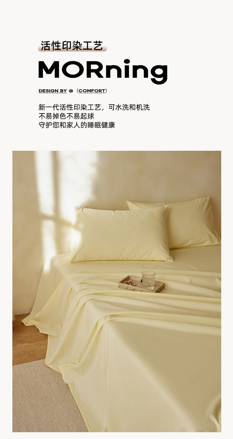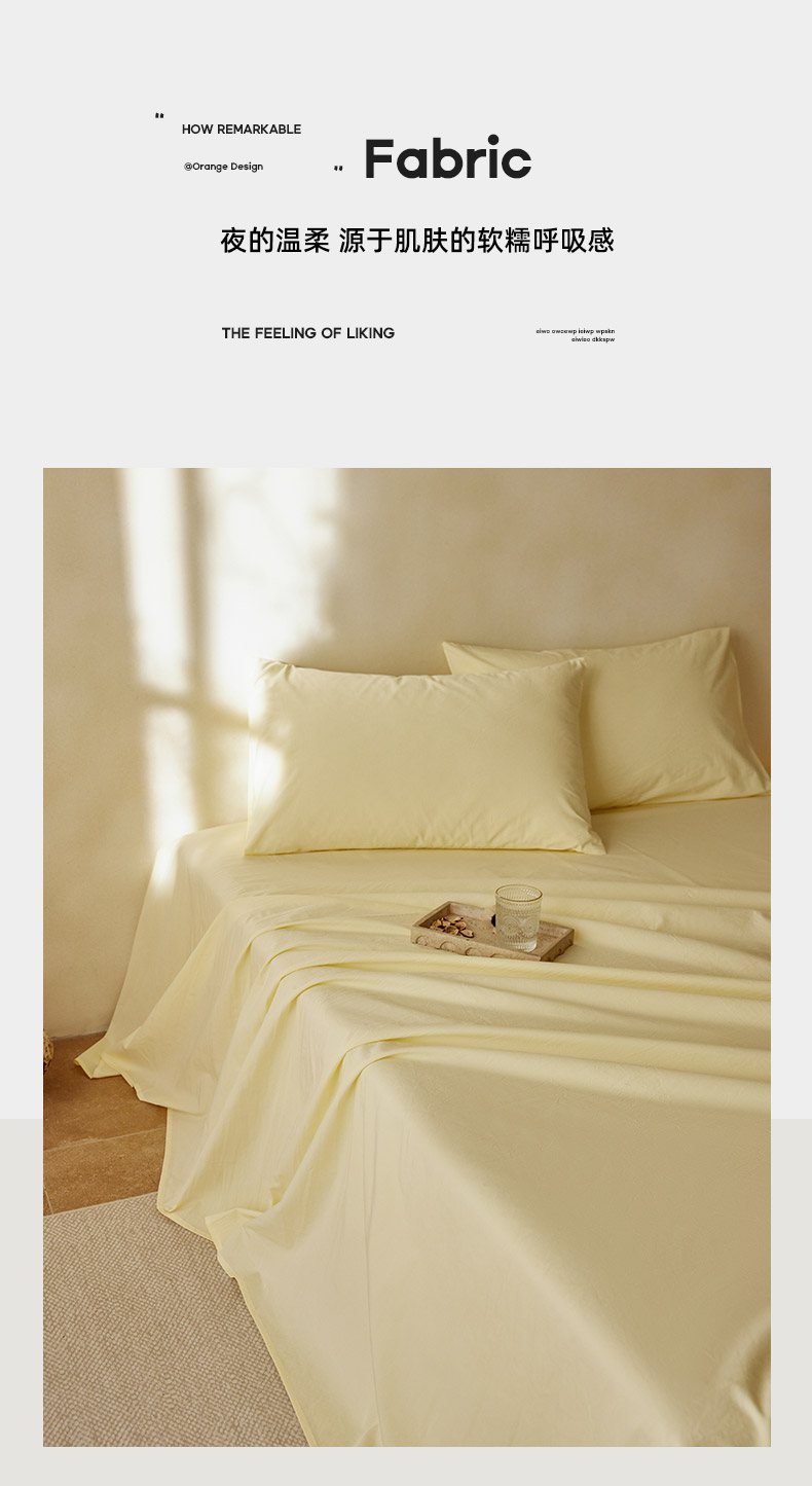 商品名称:轩和家居 2025新款全棉高支旧感砂洗长绒棉单床单 淡黄色