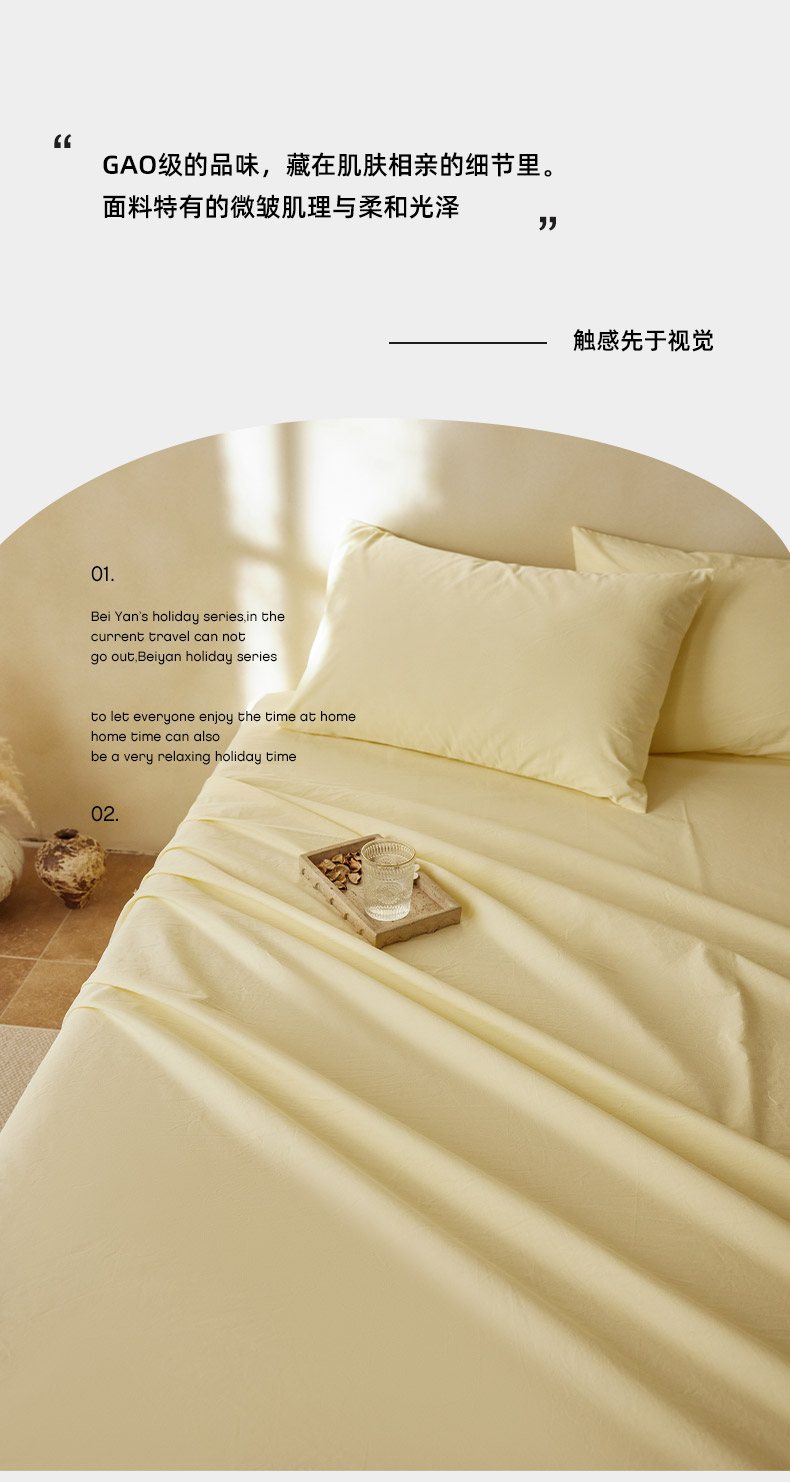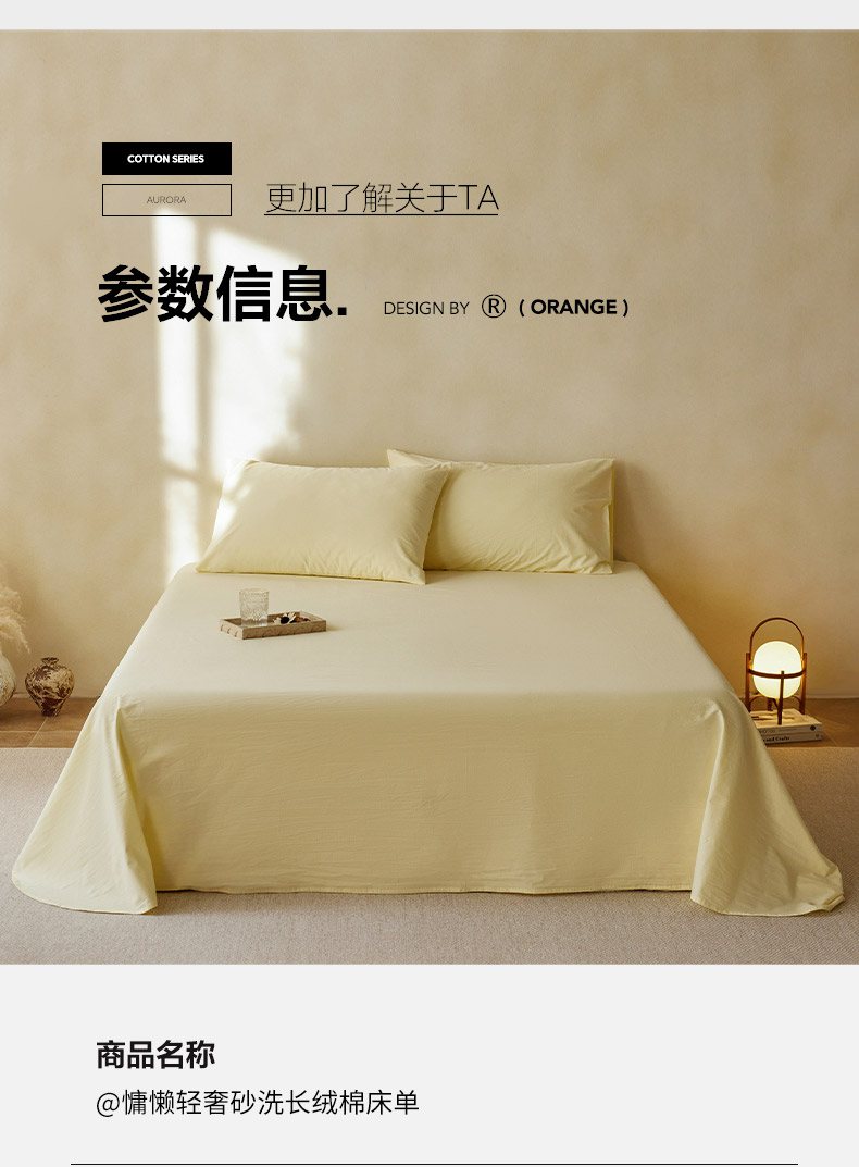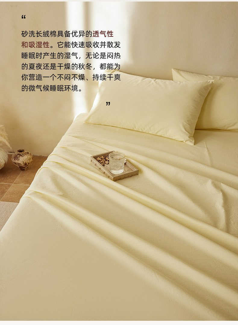 轩和家居 2025新款全棉高支旧感砂洗长绒棉单床单 淡黄色