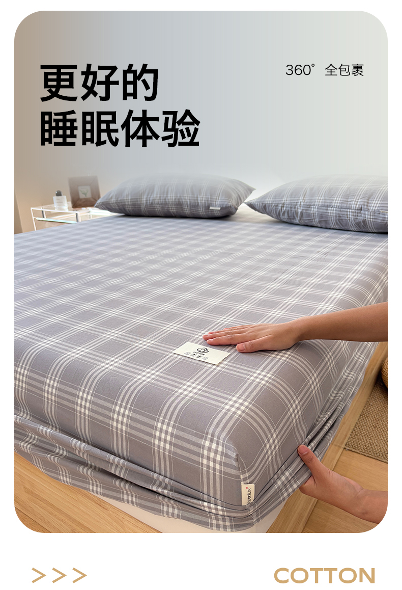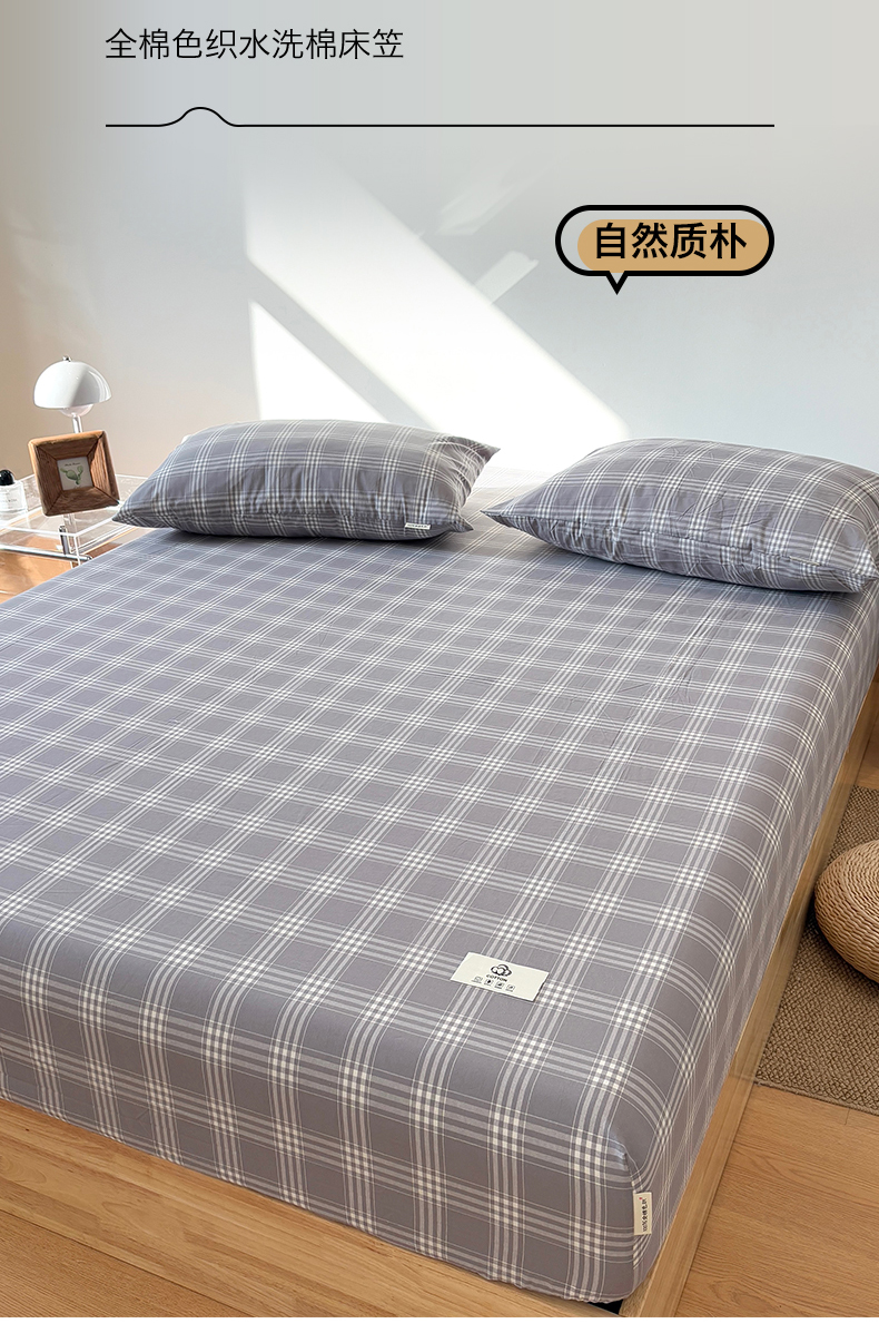 • 91家纺网 家纺一手货源 找家纺 居眠 2025新款单层色织水洗格子全棉纯棉单床笠床笠单件单品床笠 马丁灰