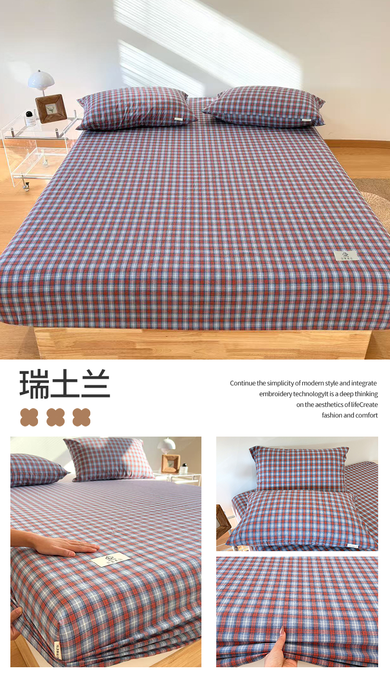 • 91家纺网 家纺一手货源 找家纺 (总)居眠 2026新款单层色织水洗格子全棉床笠,单层款-摩登蓝卡条,单层款-摩登绿卡条